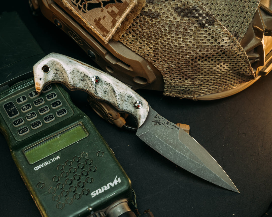 3" HUMINT- Black Burlap Micarta, Allen Bolts, Chaos Grip