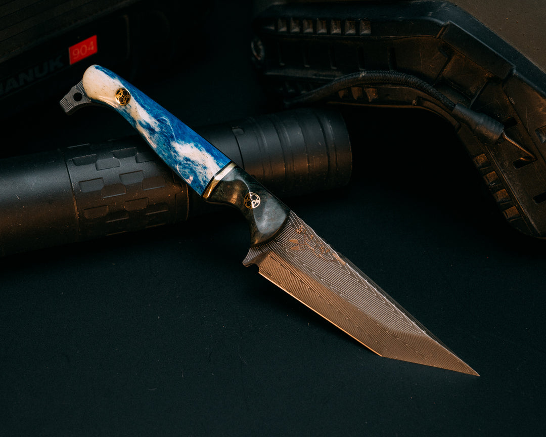 SHAW SHIV x HFB - Veagas Forge Fireball Damascus - Mosaic Pins, Contoured Grip