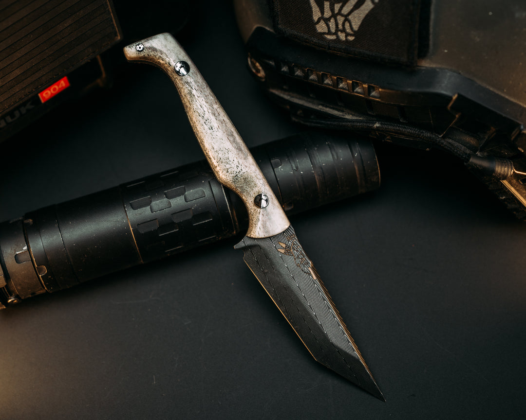 SHAW SHIV x HFB - Veagas Forge Lightning Damascus - Mosaic Pins, Contoured Grip.