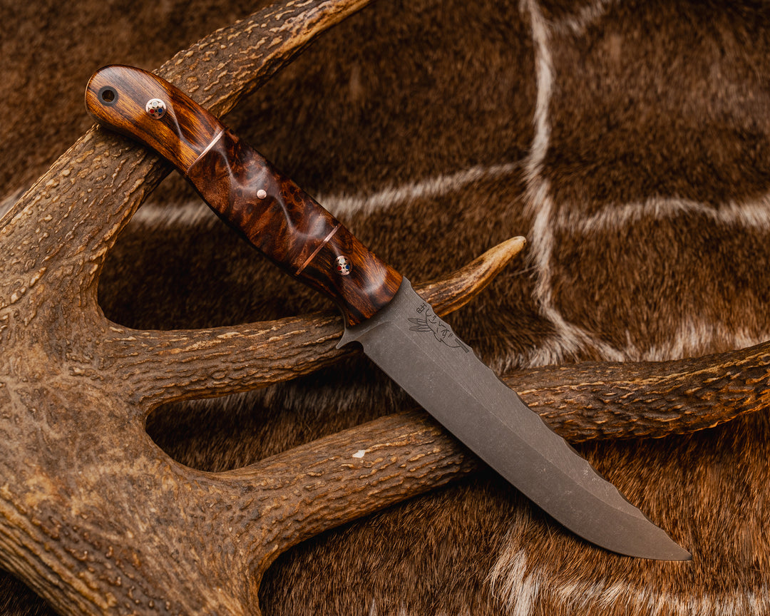 Crow Breakdown- Desert Ironwood, Copper Pin Striping, Redwood Burl Split, Copper Patriot Mosaic Pins, CF Lanyard Pin, Textured Grip