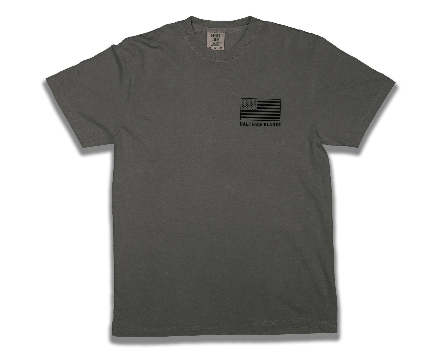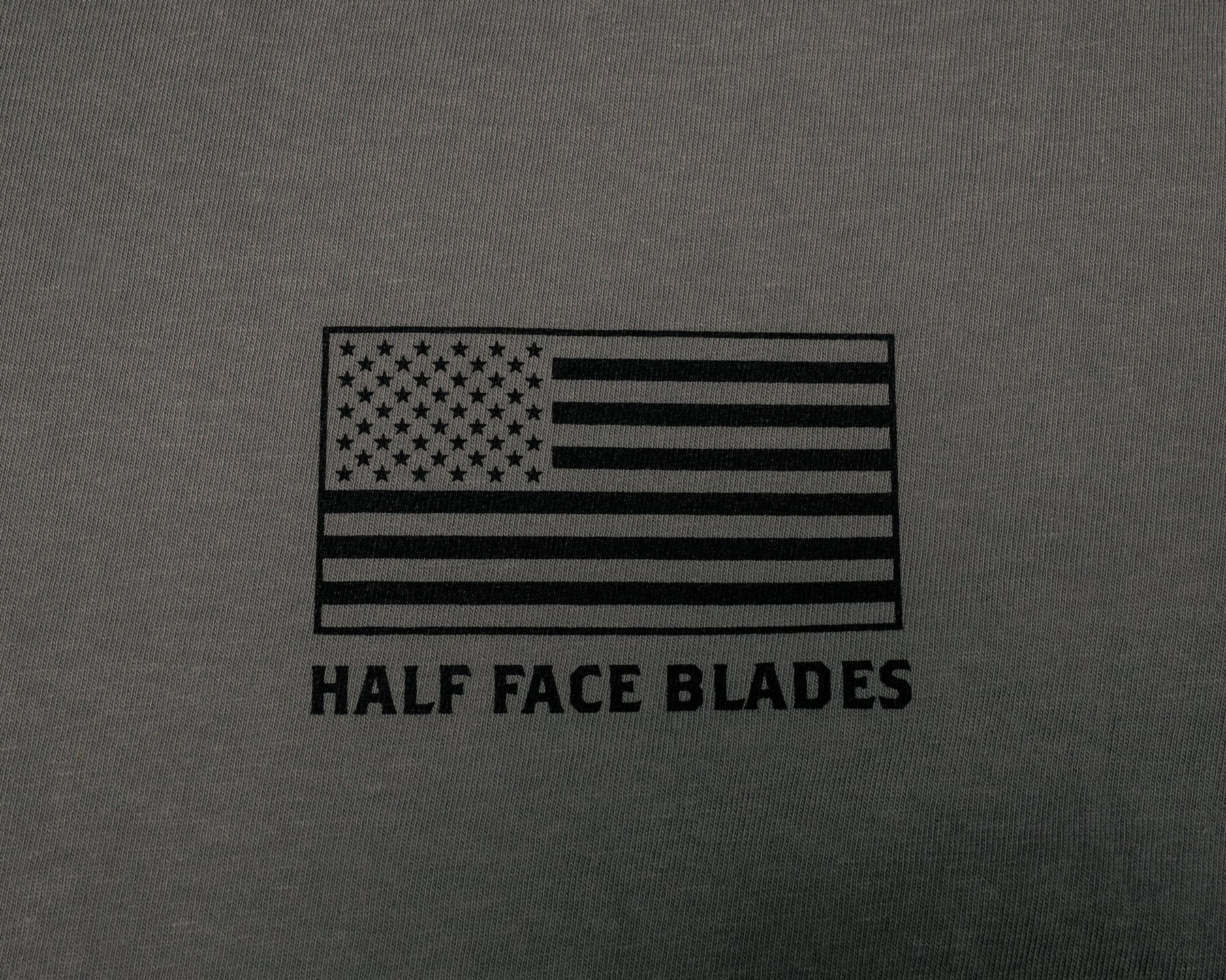 Half Face Blades American Flag on Front, Scalper Graphic on Back.