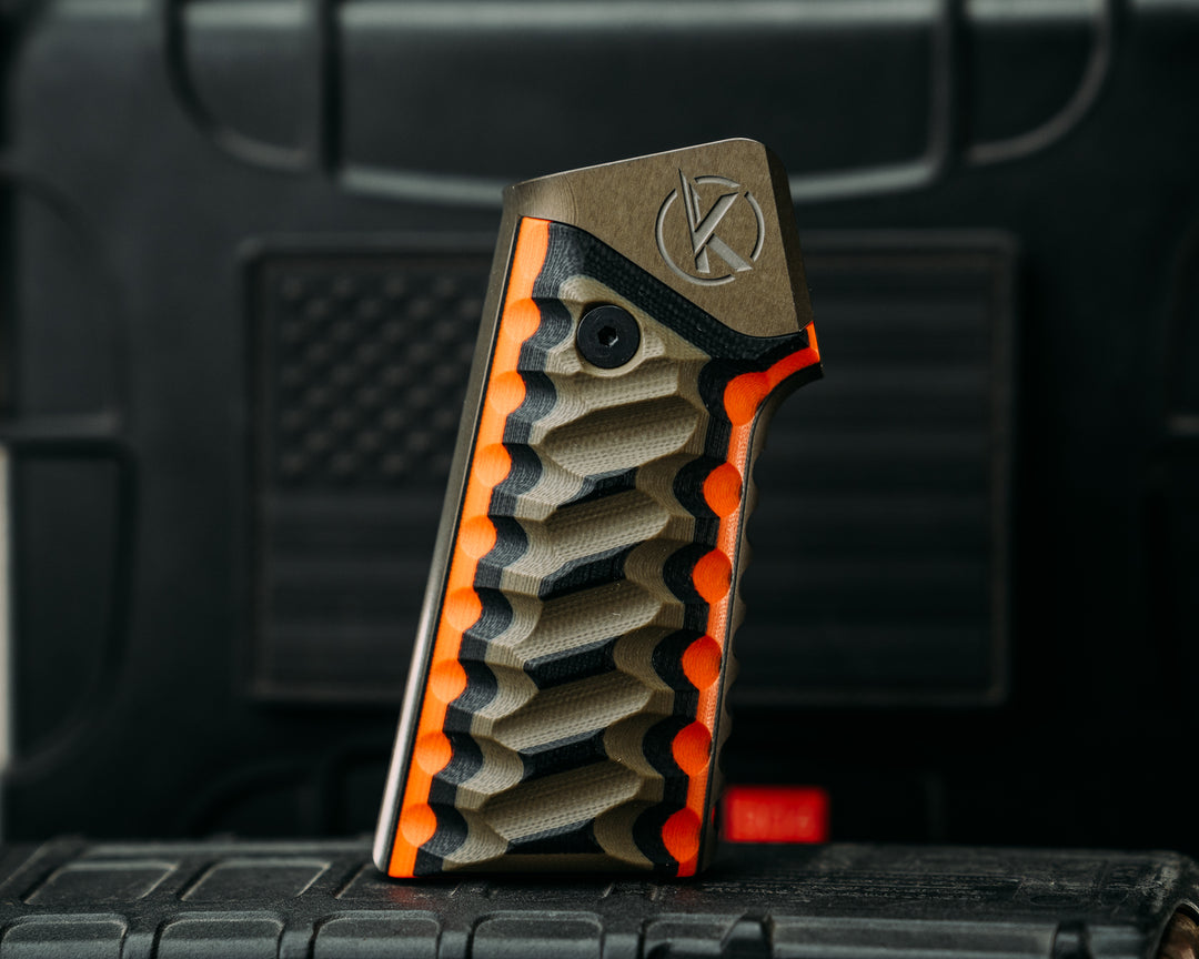 HFB x Kinetic AR Grip System - Black, OD Green & Hunter Orange G10, OD Green Anodization, Snake Grip.
