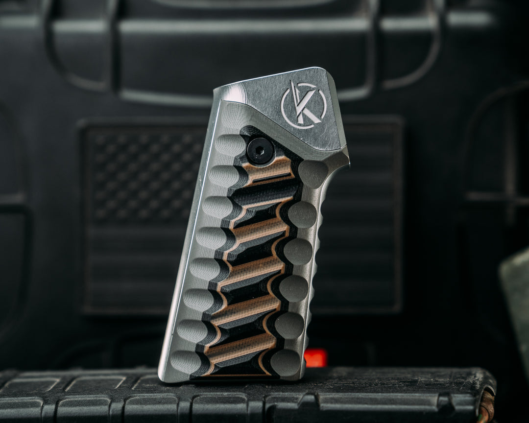 HFB x Kinetic AR Grip System - Gray, Black & Coyote G10, Clear Anodization, Snake Grip.