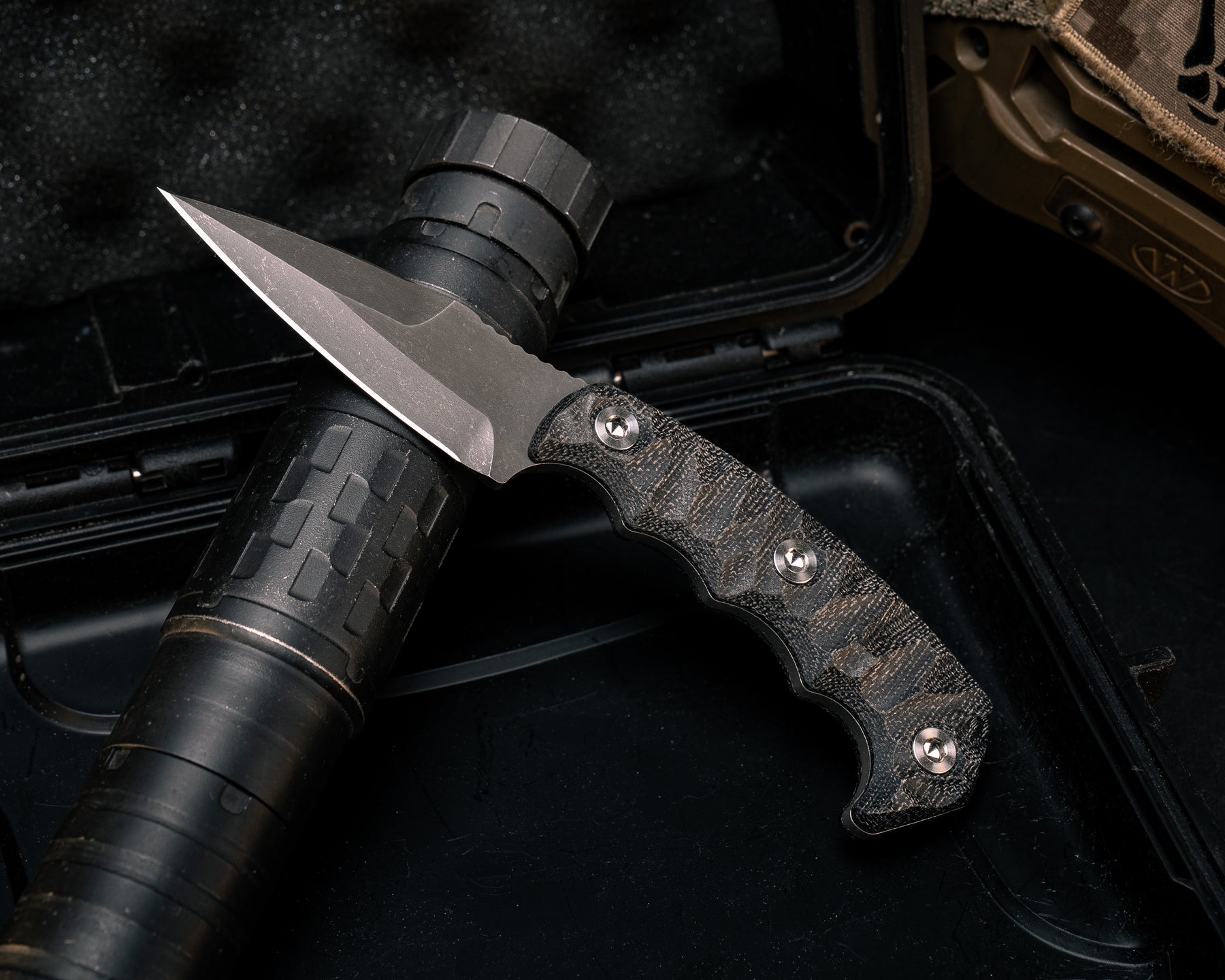 3" HUMINT- Black Canvas Micarta, Ti Allen Bolts, Textured Grip
