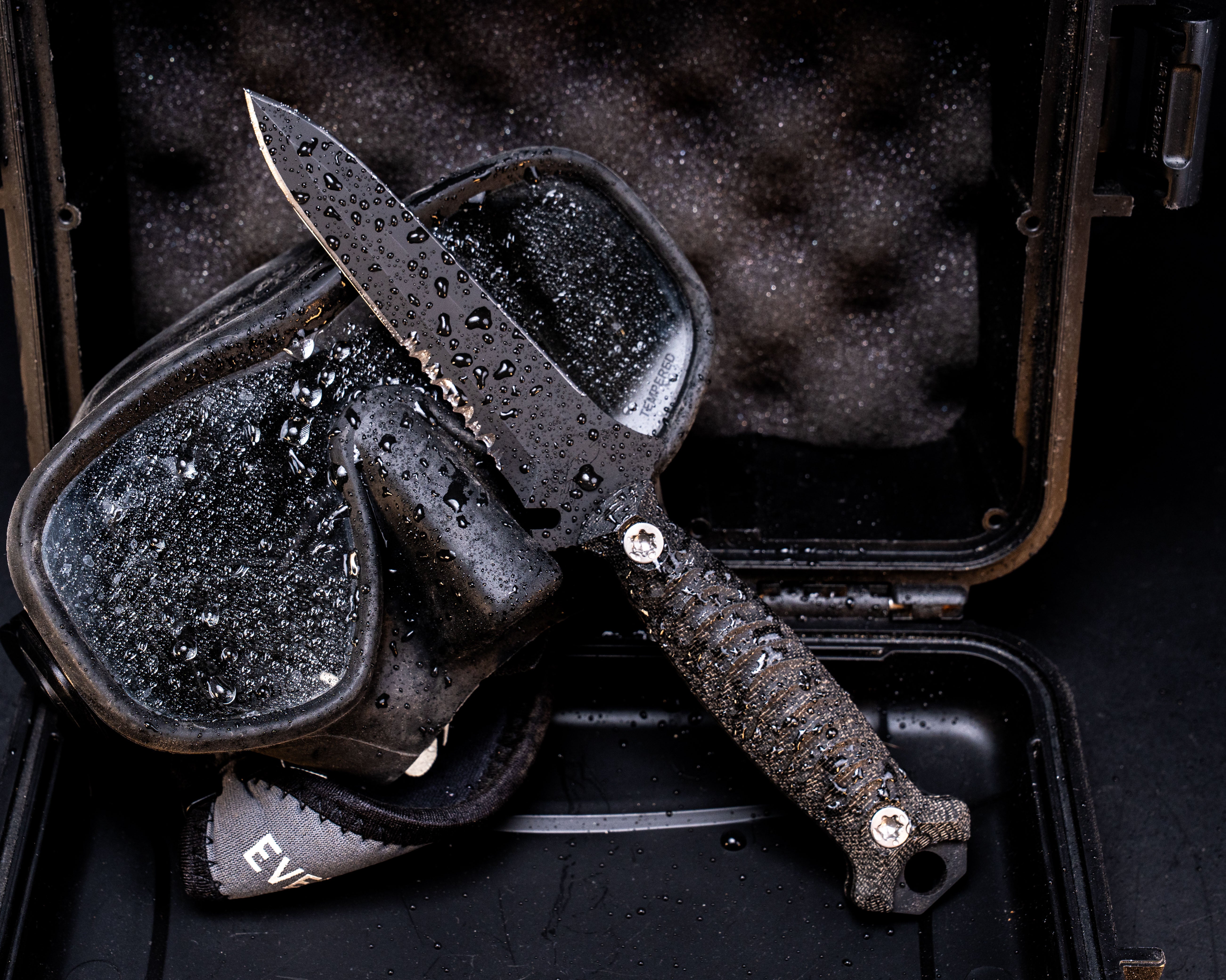 Next: Dive Knife- Black Canvas Micarta, Armor Black Cerakote, Ti Torx Bolts, Textured Grip