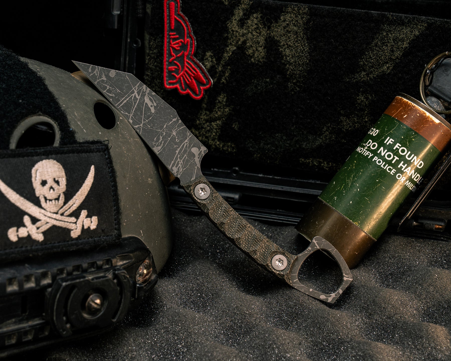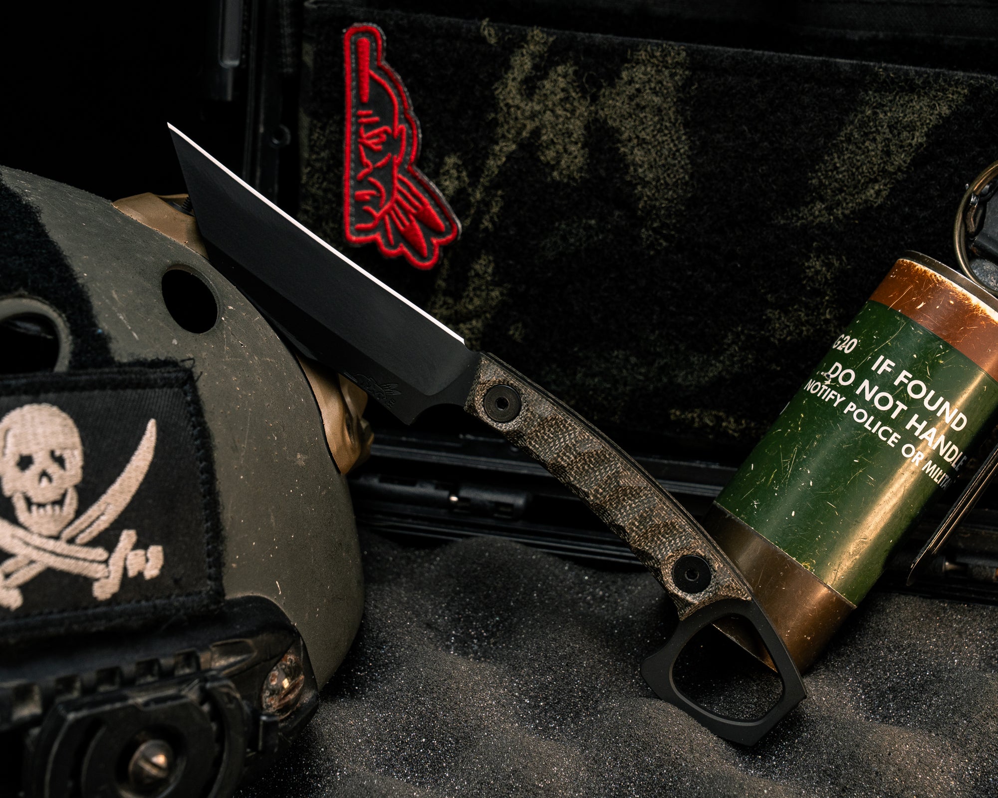 Blade designed by Special Operators for easy carry and easy access in plate carrier or in low vis situations, for pushing or stab and slash movements.