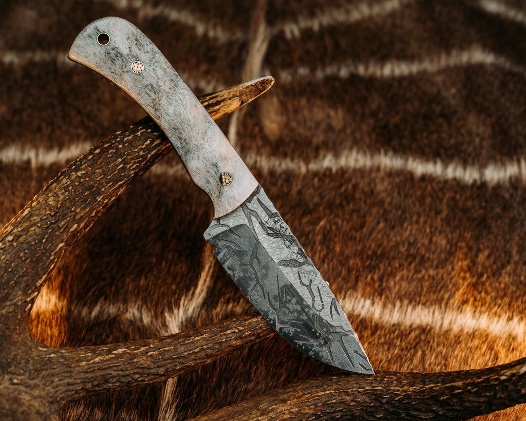 Buteo - Giraffe Bone, Black G10 and Copper Pin Striping, Copper Dark Matter Carbon, Desert Ironwood, Mosaic Pins, Contoured Grip