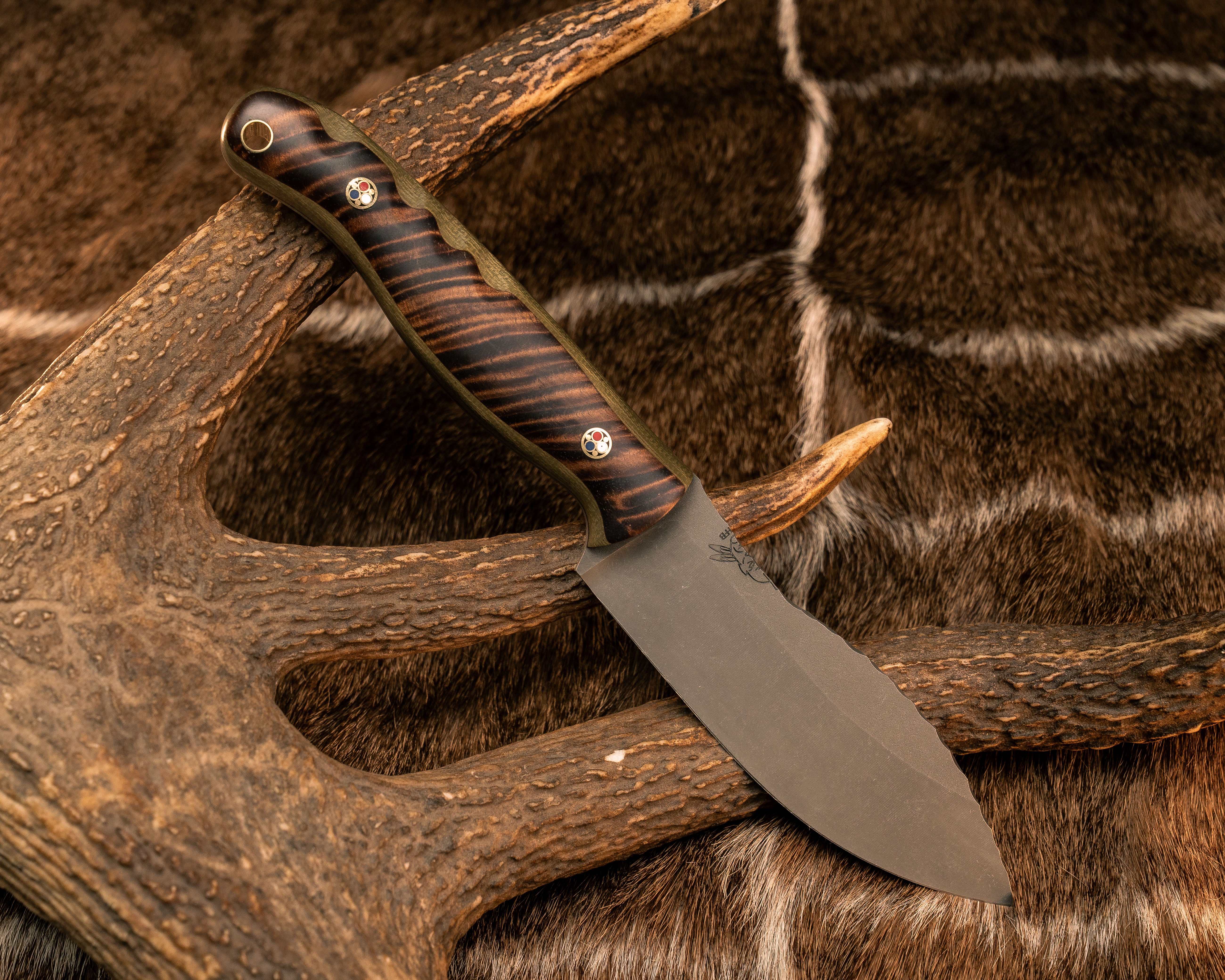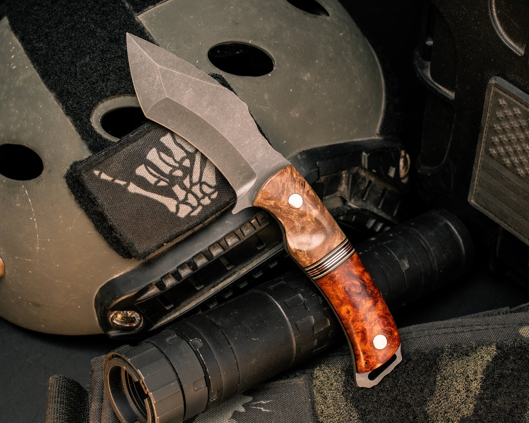 Buteo- Maple, Black G10, Coyote G10, White G10 and Copper Split, Amboyna Burl, Copper Pins, Textured Grip