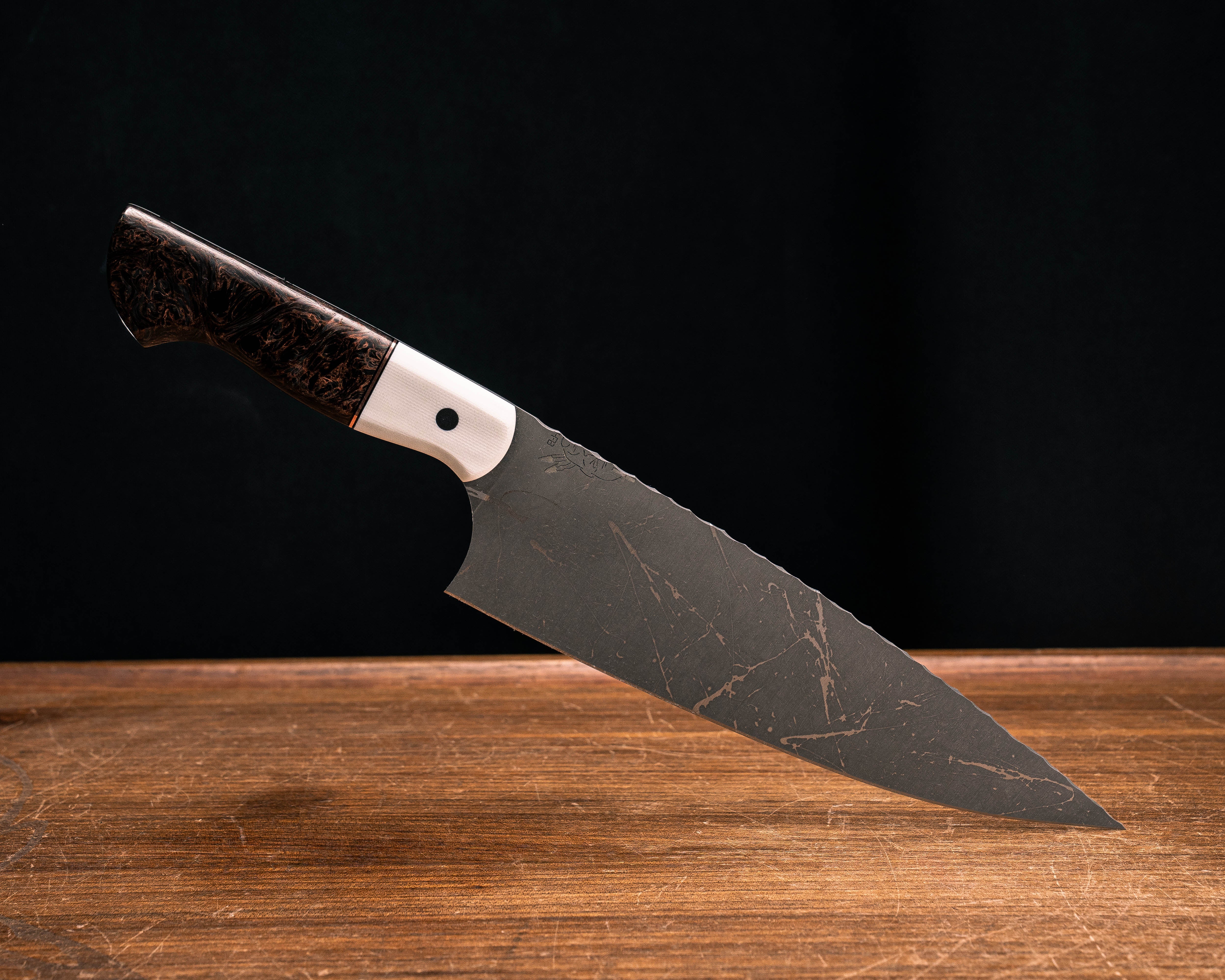 Next: Chef Blade- White G10, Black G10 and Bronze Split, Copper Dark Matter Carbon, CF Pins, Smooth Grip
