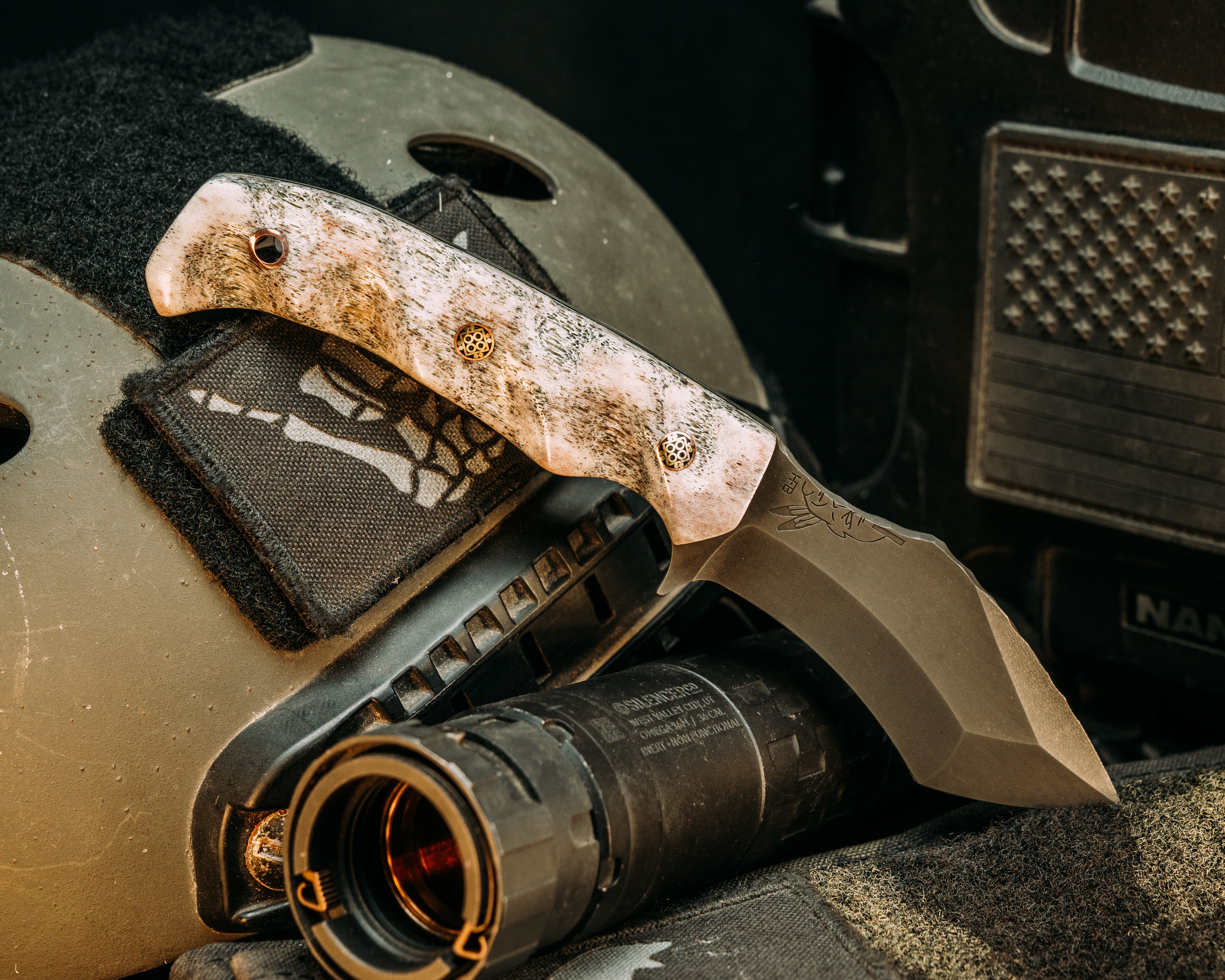 Next: Buteo- CO Elk Antler, Mosaic Pins, Copper Lanyard Pin, Textured Grip