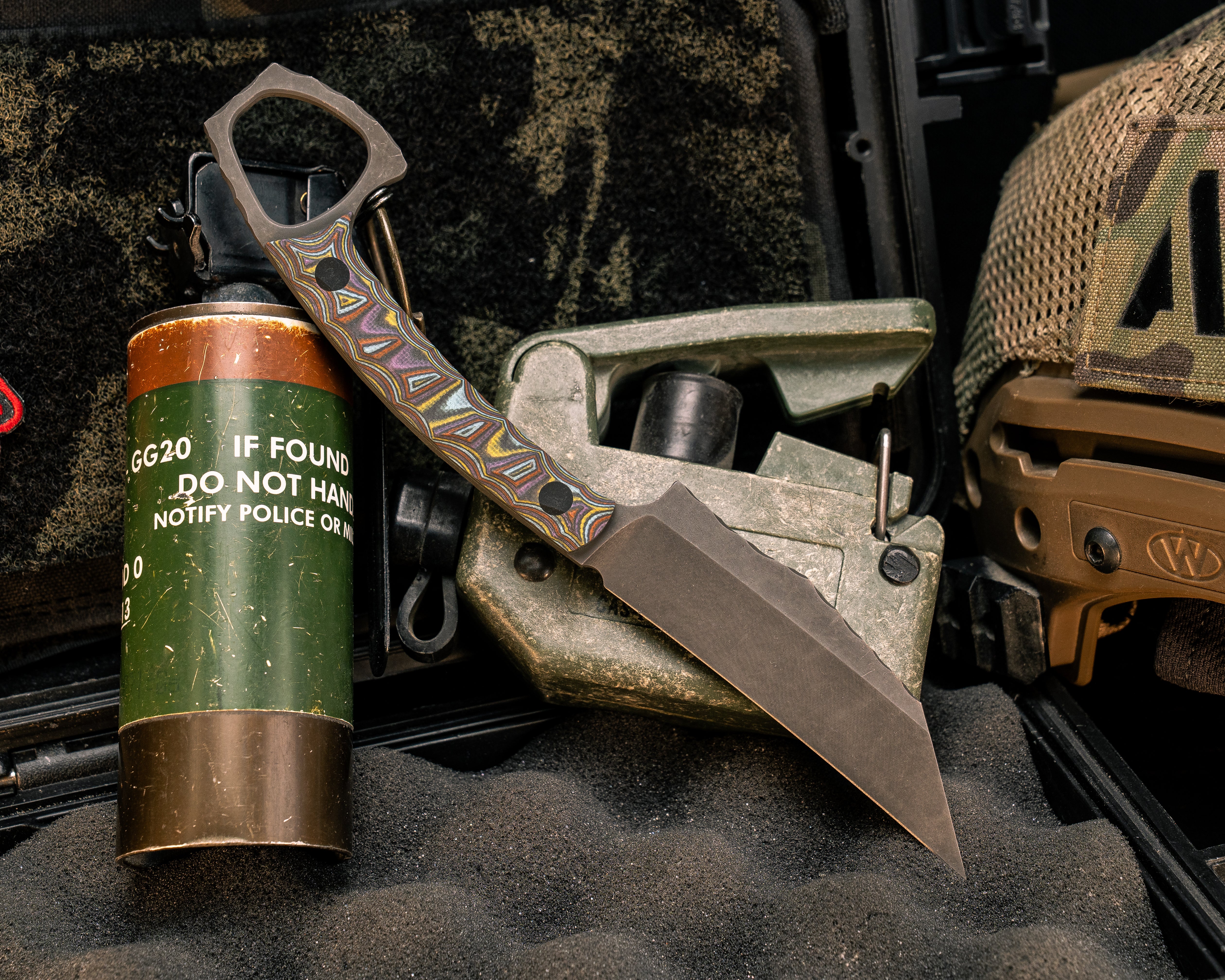 Blade designed by Special Operators for easy carry and easy access in plate carrier or in low vis situations, for pushing or stab and slash movements.