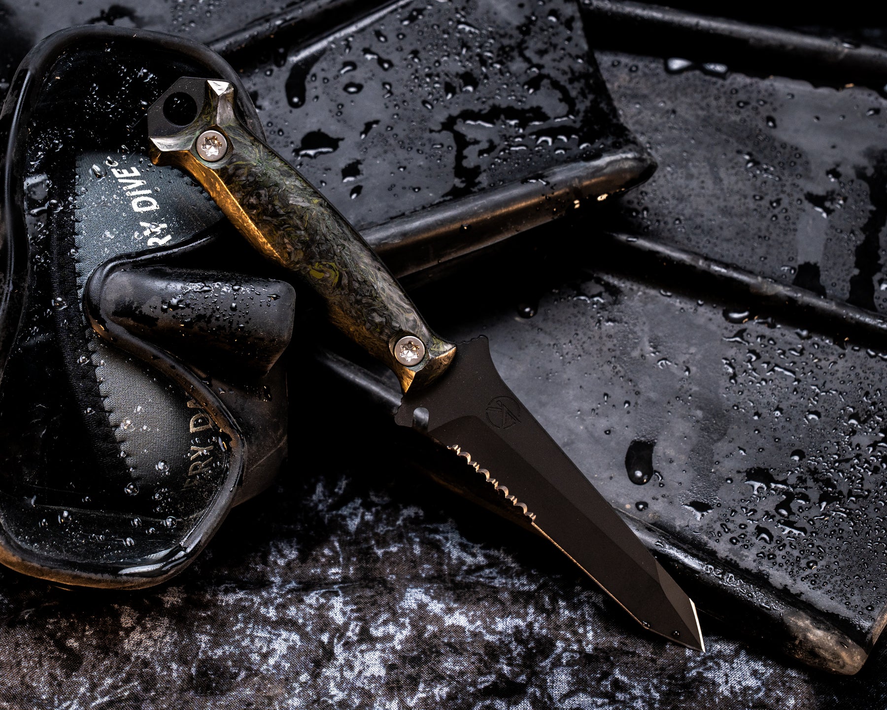 Dive Knife Tanto- Green Dark Matter Carbon, Armor Black Cerakote, Ti T