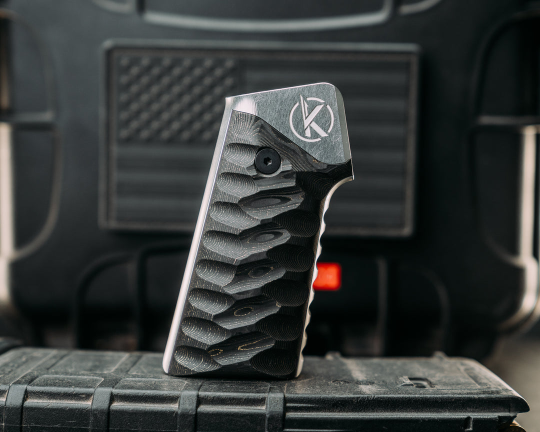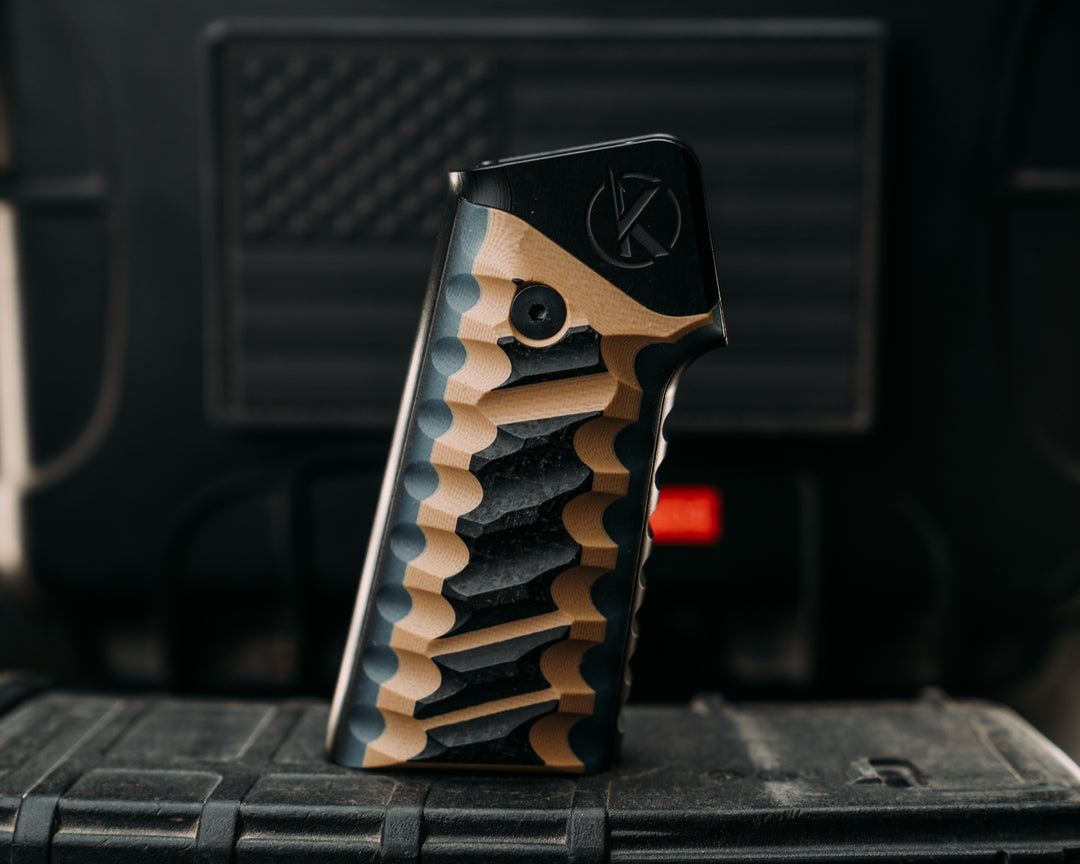 HFB x Kinetic AR Grip System - Coyote, Gray & Black G10, Black Anodization, Snake Grip