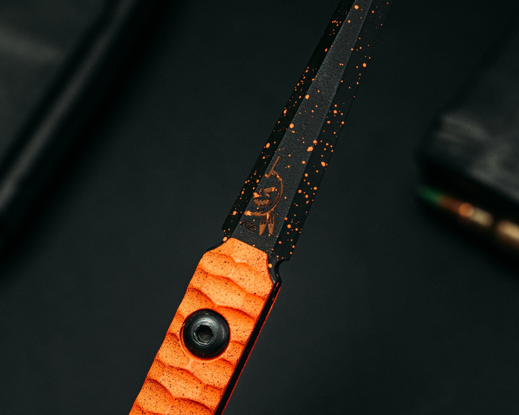 Cardiac Spike (2025 Halloween Edition) - Hunter Orange G10, Armor Black Cerakote w/ Orange Splatter, Allen Bolts, Iron Grip.