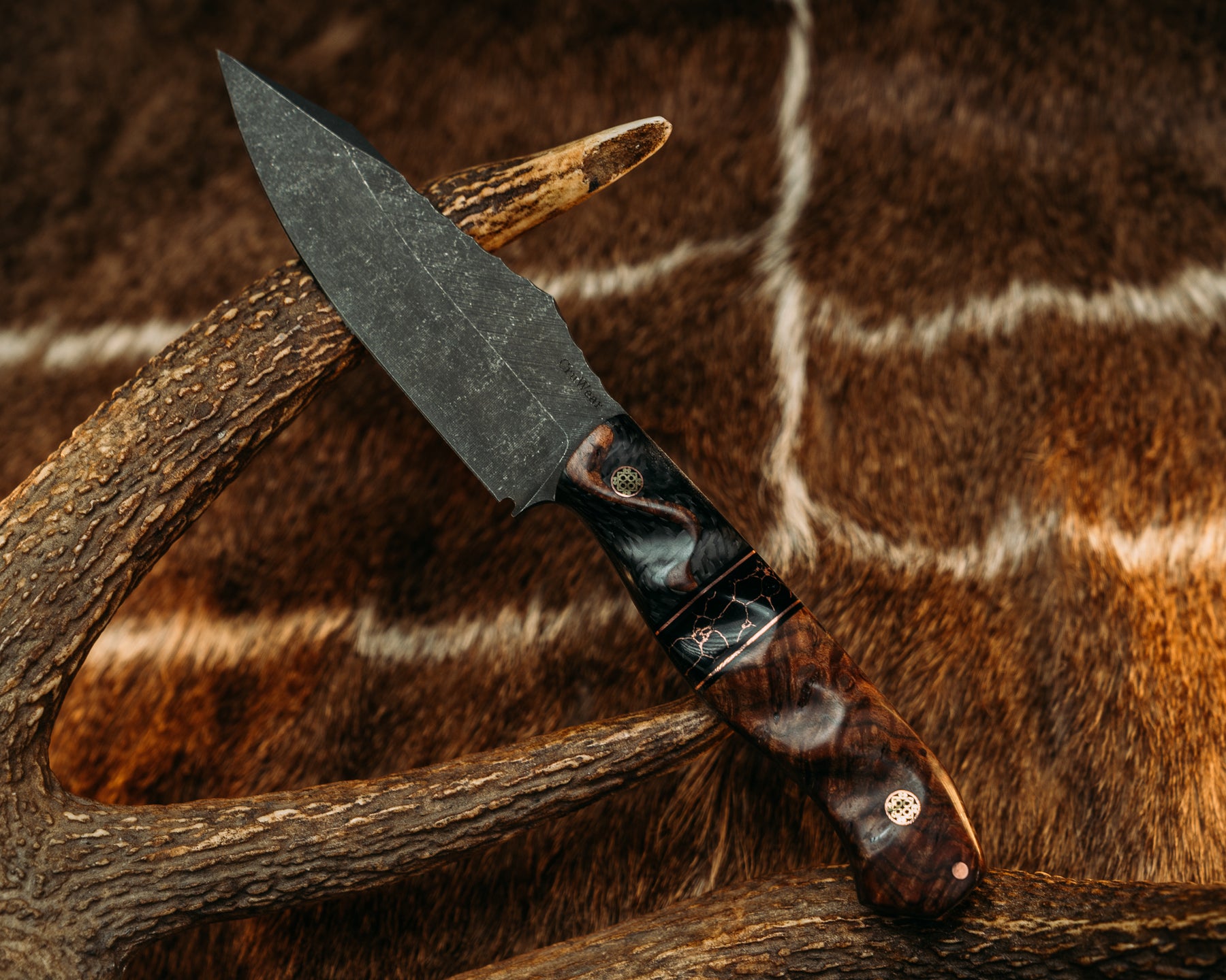 Field Knife (CruWear) - Maple over Carbon, Black G10 and Copper Pin St