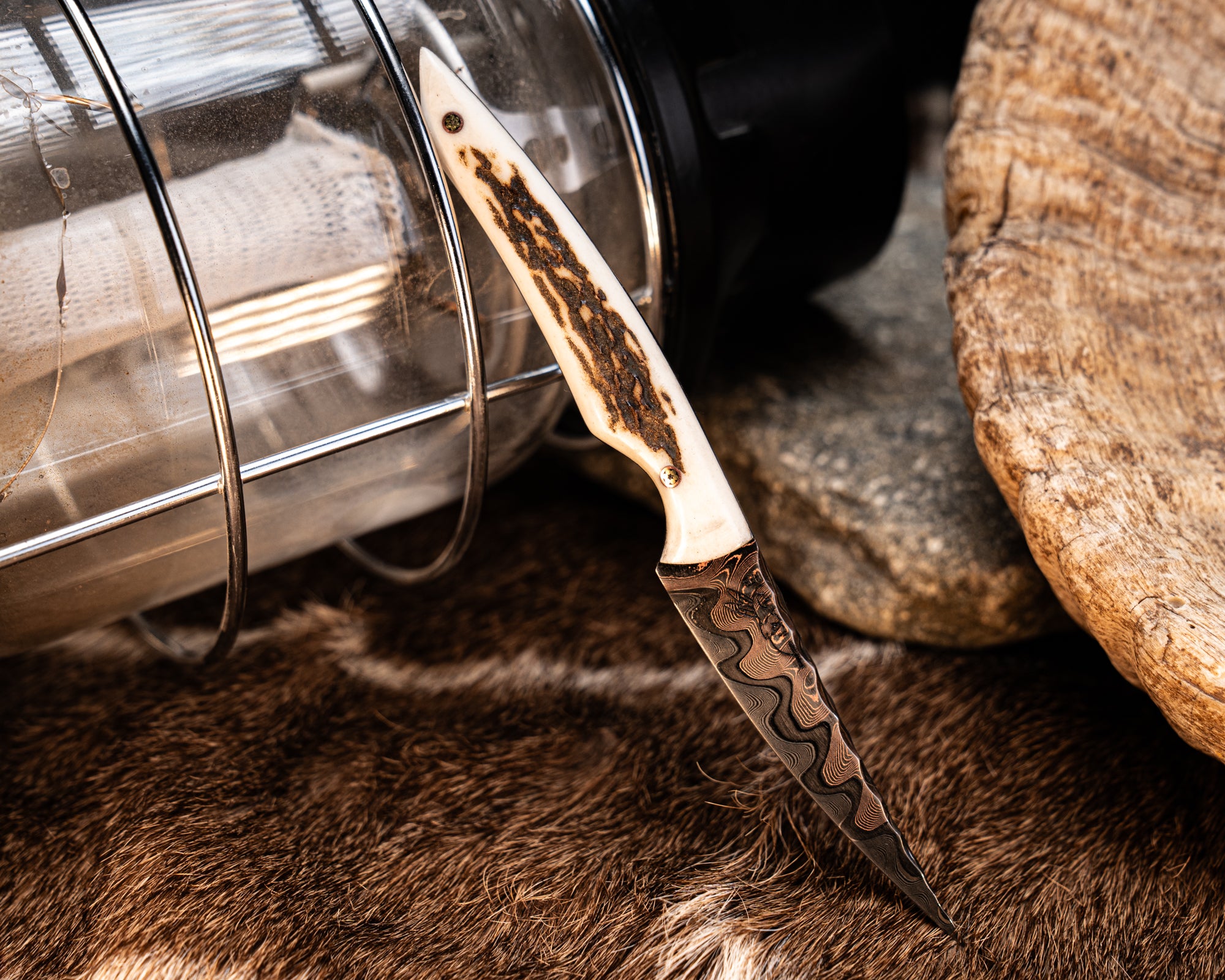 Next: Little Gentleman- Baker Forge Ripple Copper Mai Damascus- CO Elk, Mosaic Pins, Smooth Grip