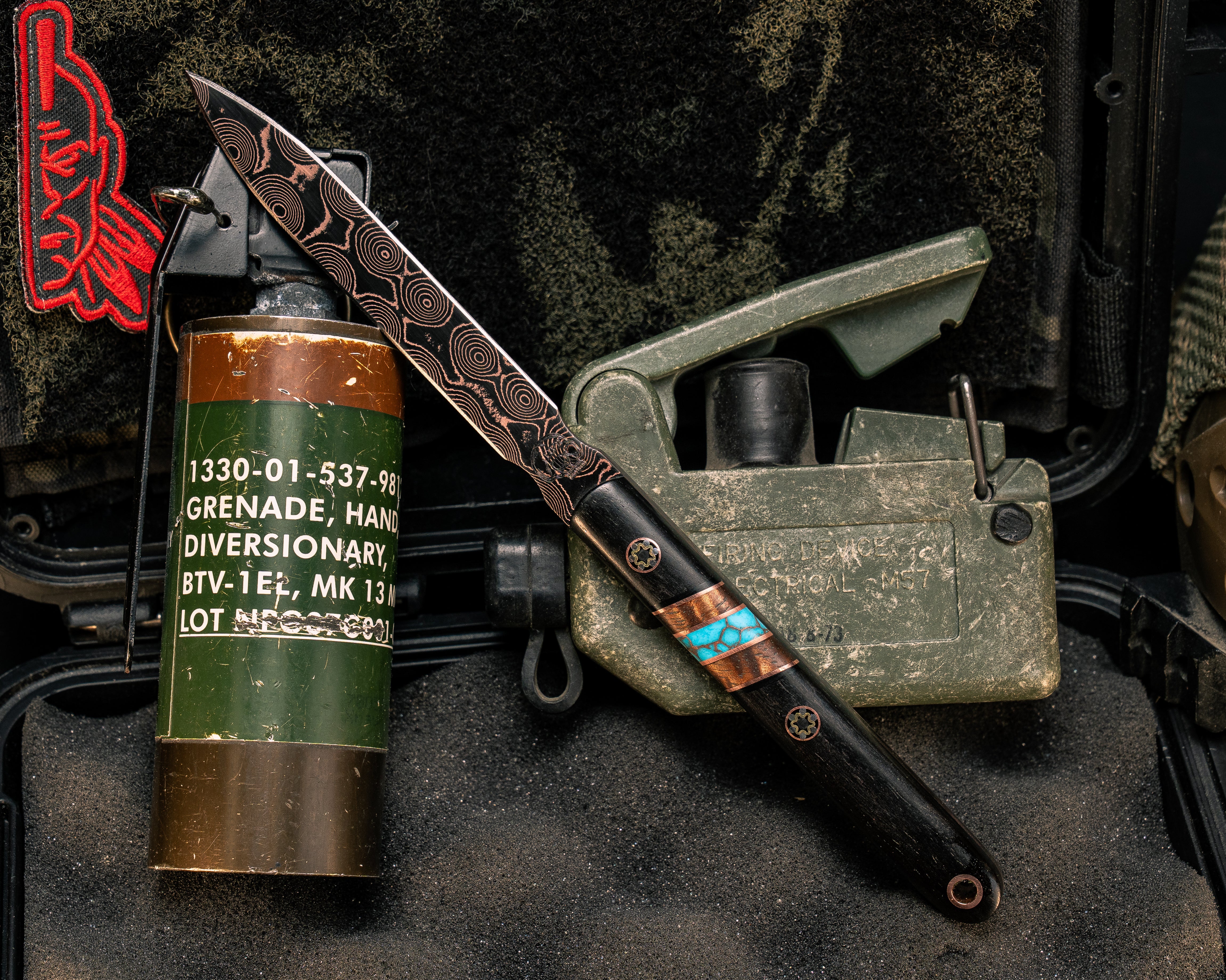 OSS Spike- Baker Forge Raindrop CopperMai- Desert Ironwood, Black G10,