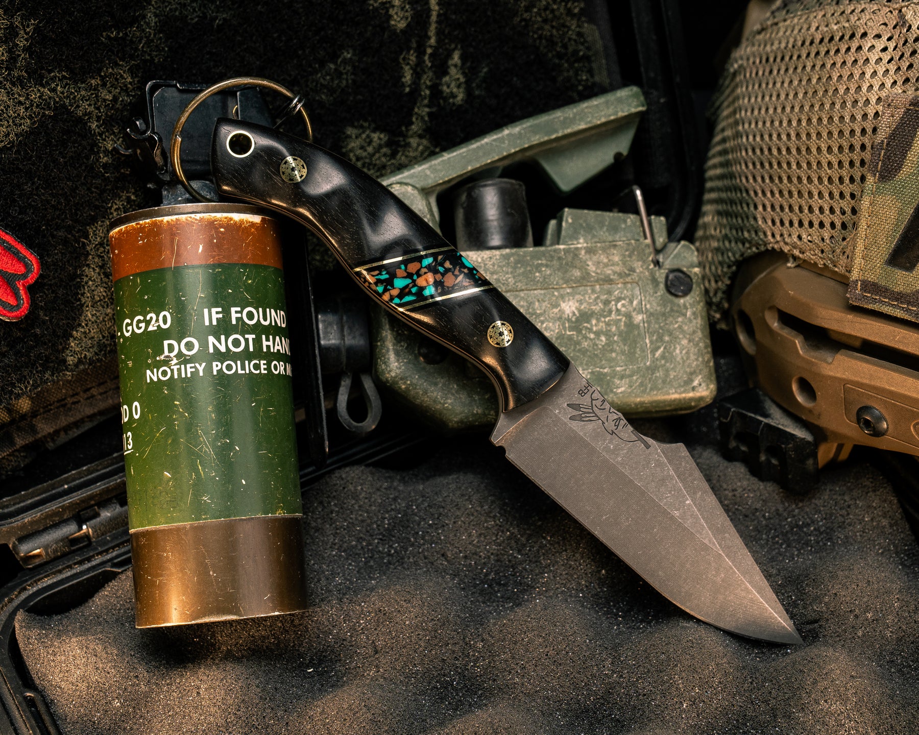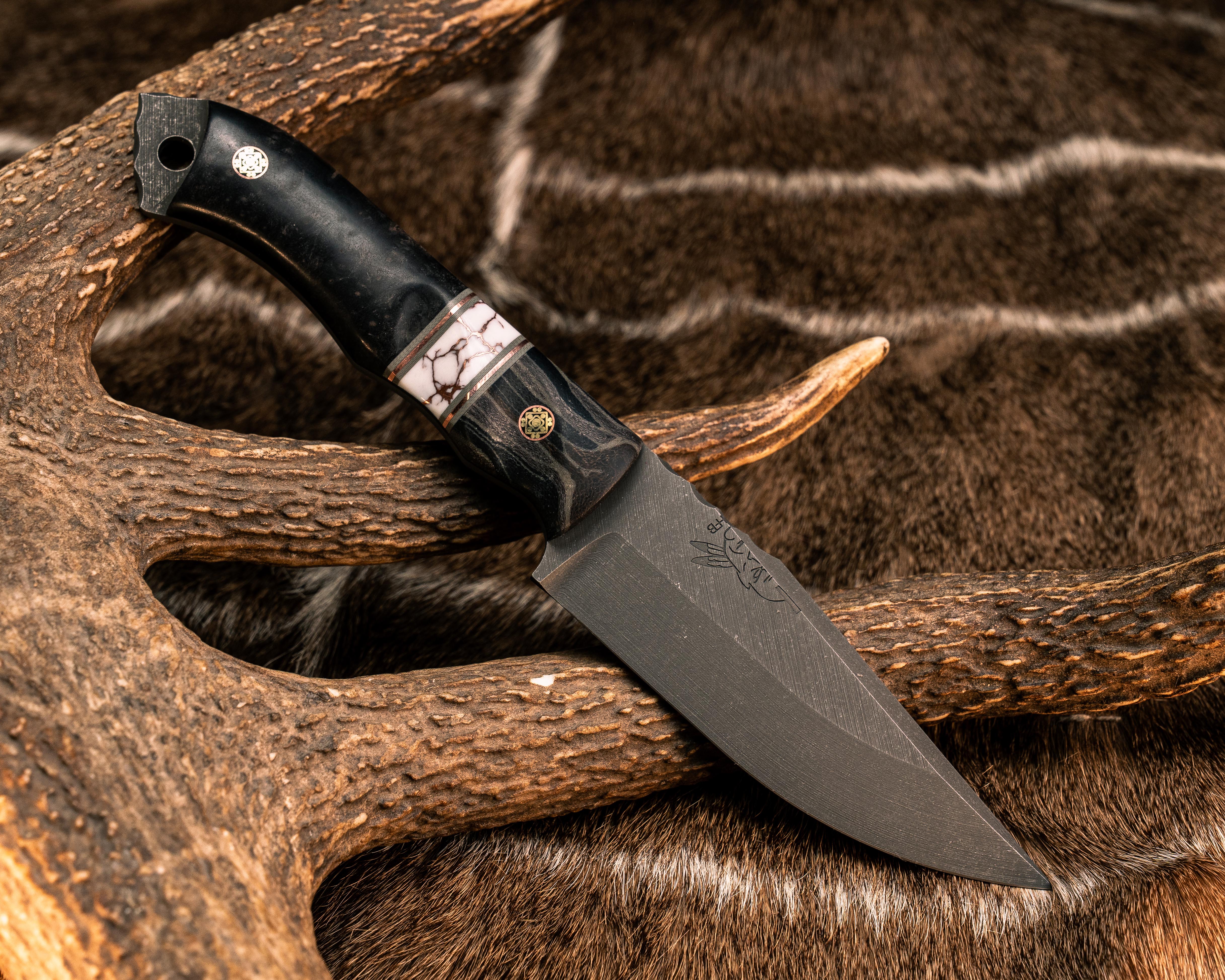 Next: Red Crow- El Camo G-Carta, Grey G10 and Copper Pin Striping, White with Copper Matrix Tru-stone Split, Dyed Redwood, Mosaic Pins, Textured Grip