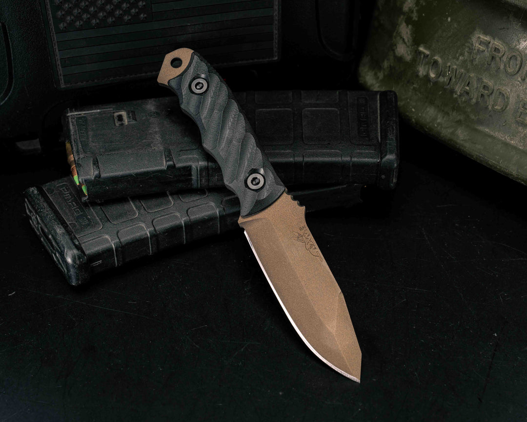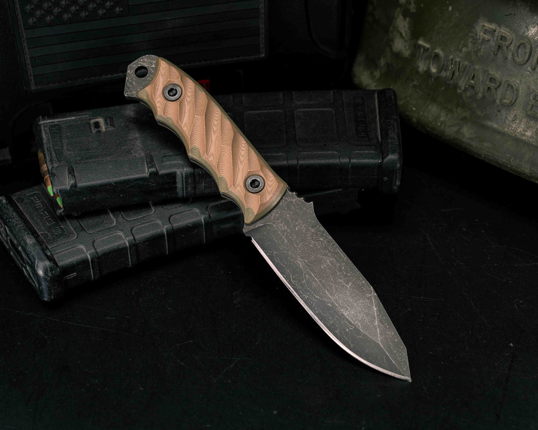 Tosahwi - Black Burlap Micarta, Midnight Bronze Cerakote, Allen Bolts, Textured Grip