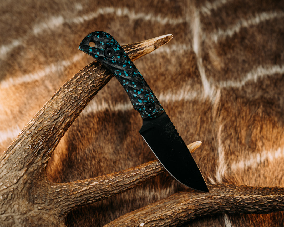 Cav Jr Back Country- Turquoise Rocky Wave Carbon, Armor Black Cerakote, Allen Bolts, Textured Grip