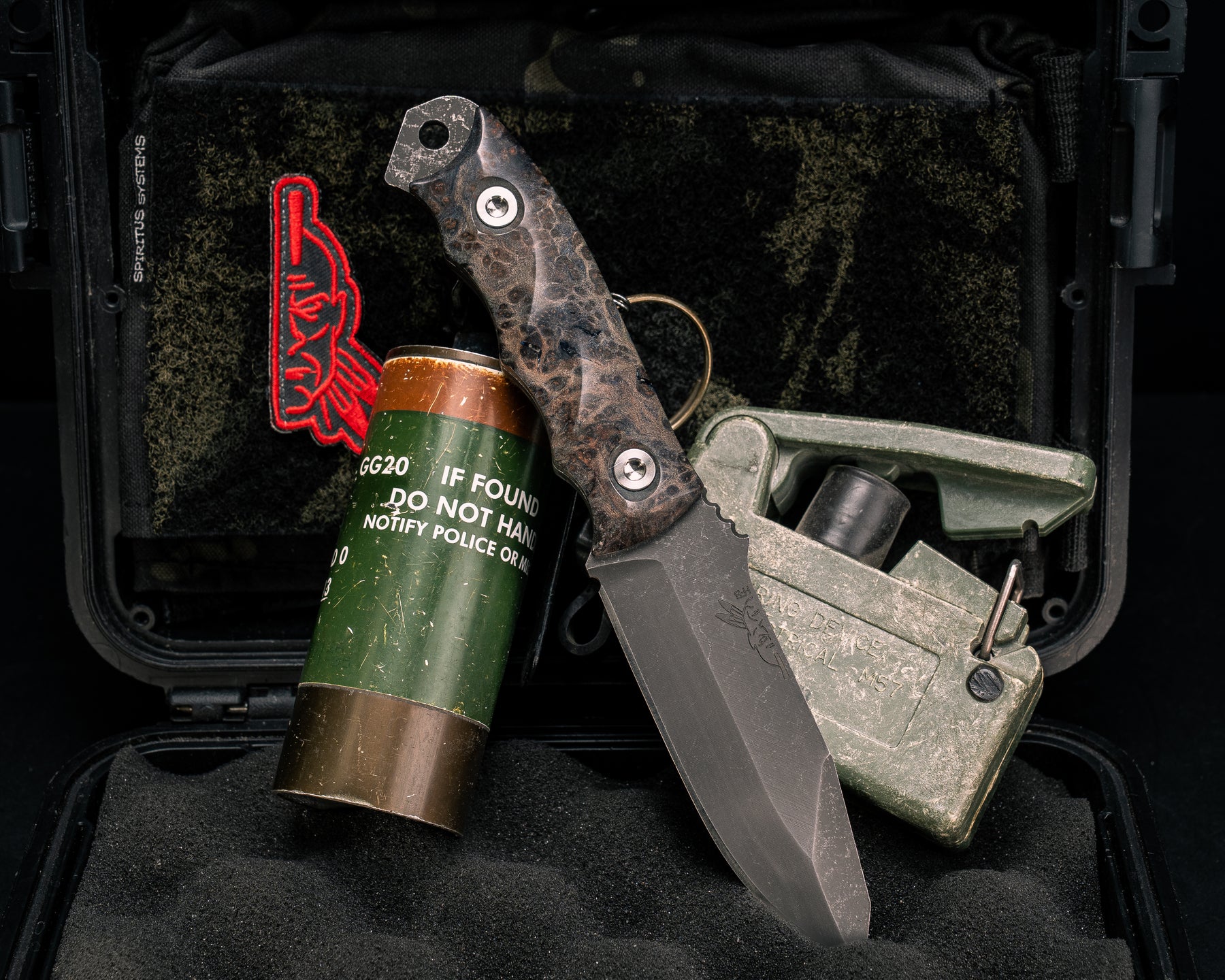 Disaster Jr- Dyed Redwood Burl, Ti Allen Bolts, Textured Grip