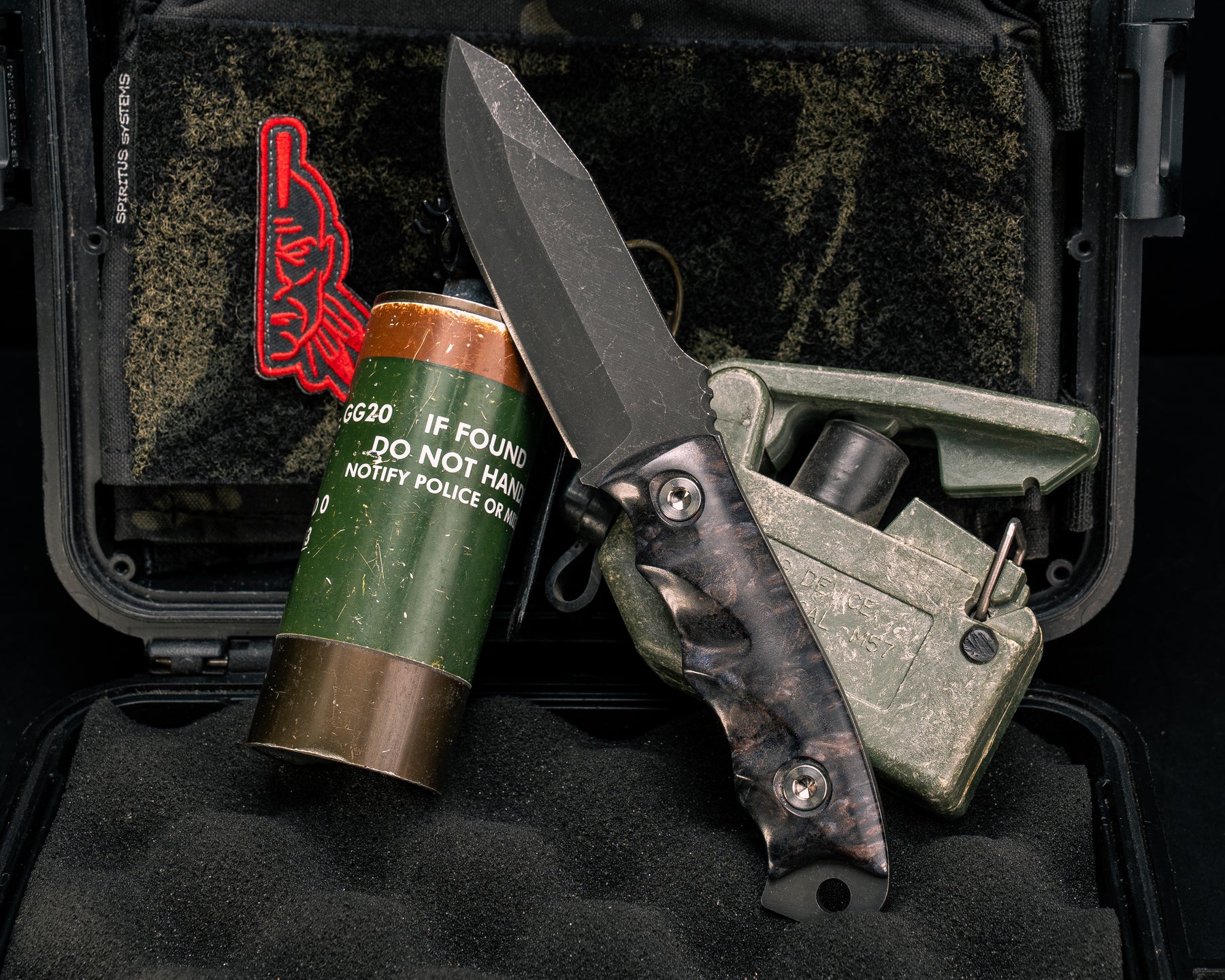 Disaster Jr- Dyed Redwood Burl, Ti Allen Bolts, Textured Grip