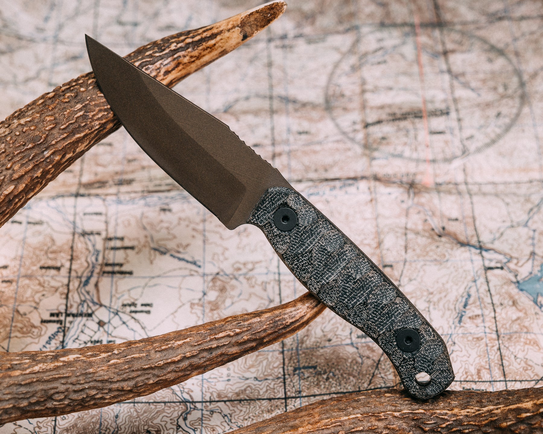 Feather Light - Black Canvas Micarta, Midnight Bronze Cerakote, Allen