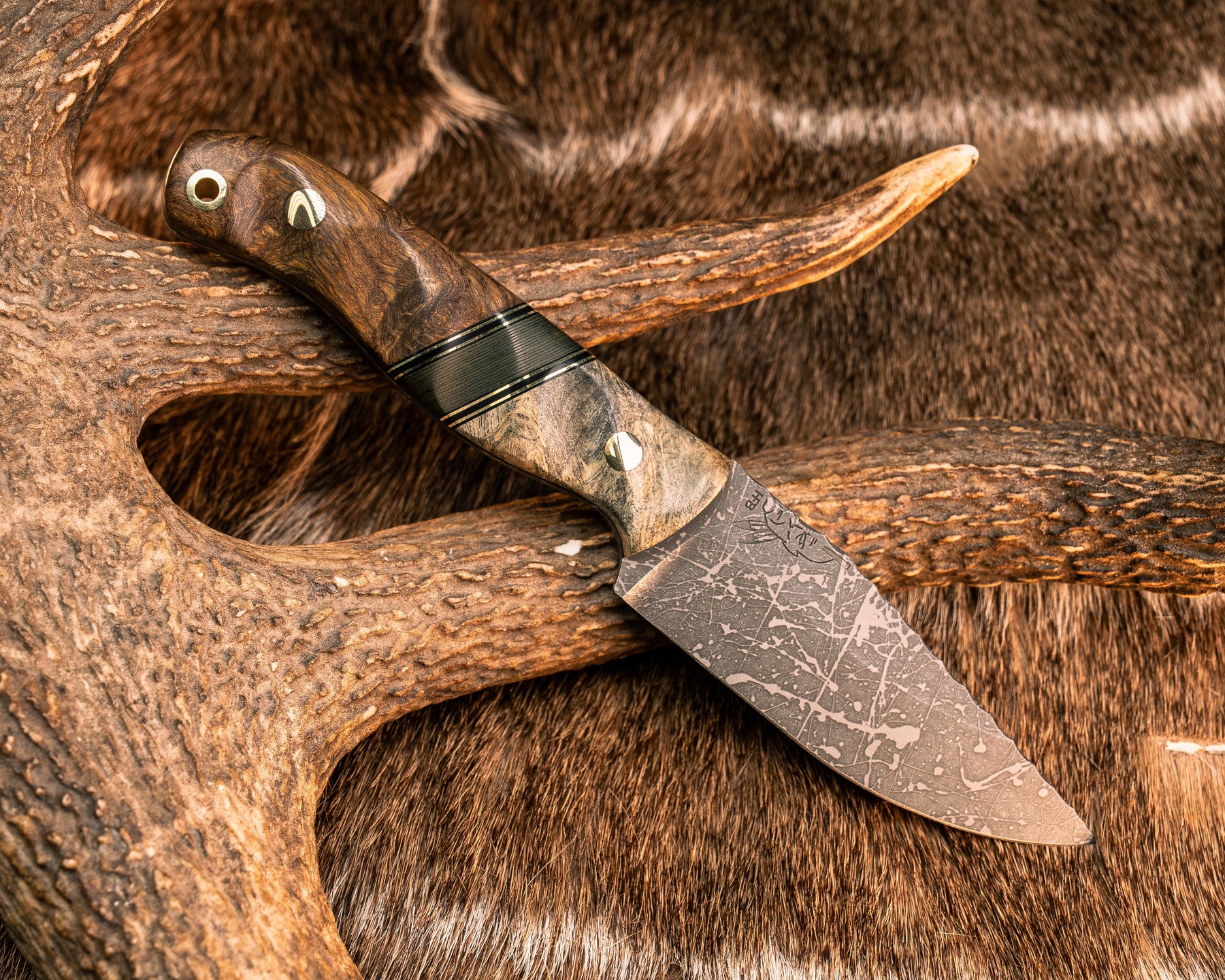 Feather Light- Buckeye Burl, Black G10 and Brass Pin Striping, Jungle Wear FAT Carbon Split, Desert Ironwood, Brass Pins, Brass Lanyard Pin, Textured Grip