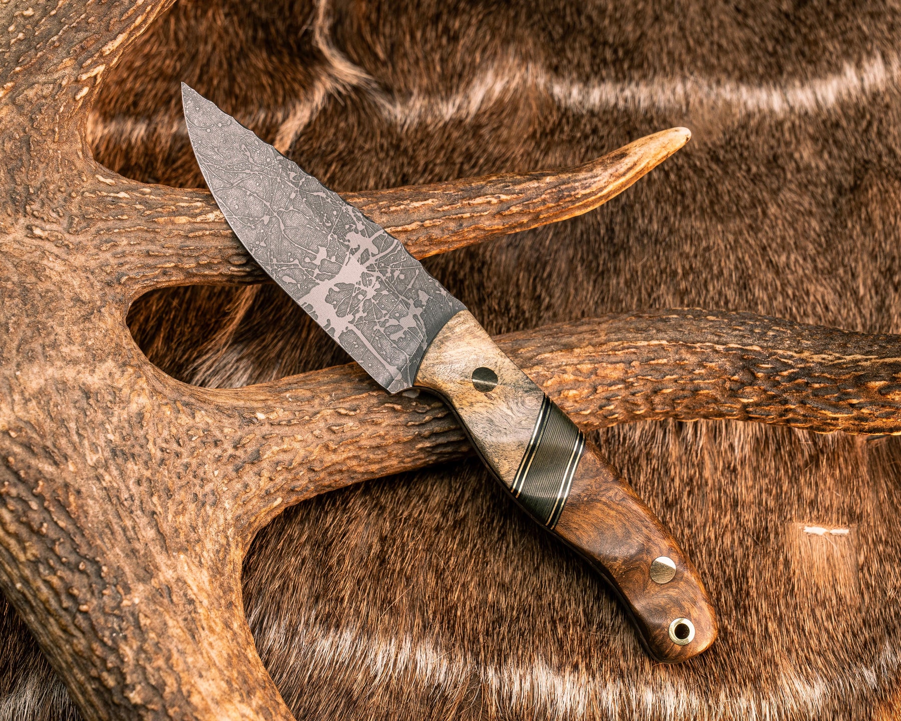 Feather Light- Buckeye Burl, Black G10 and Brass Pin Striping, Jungle