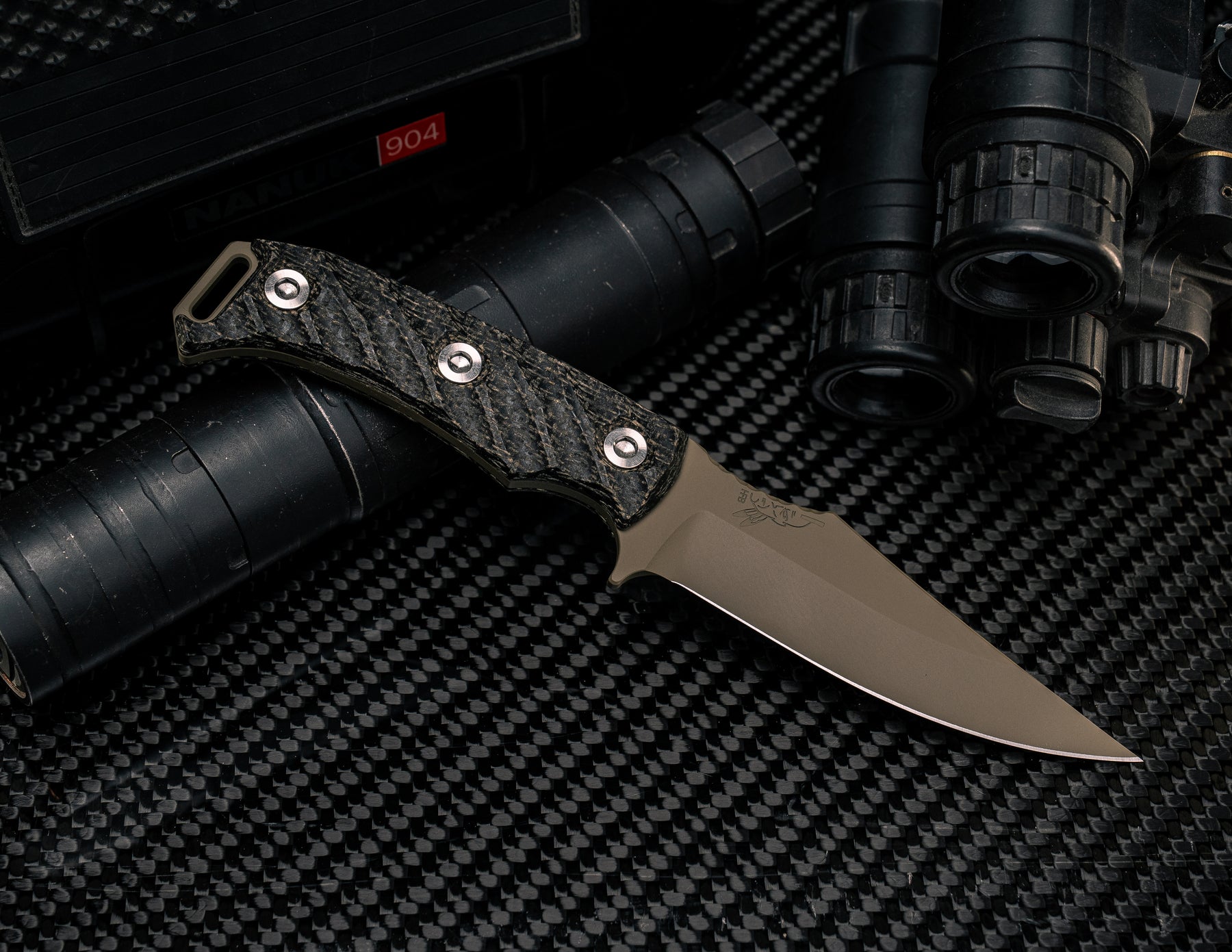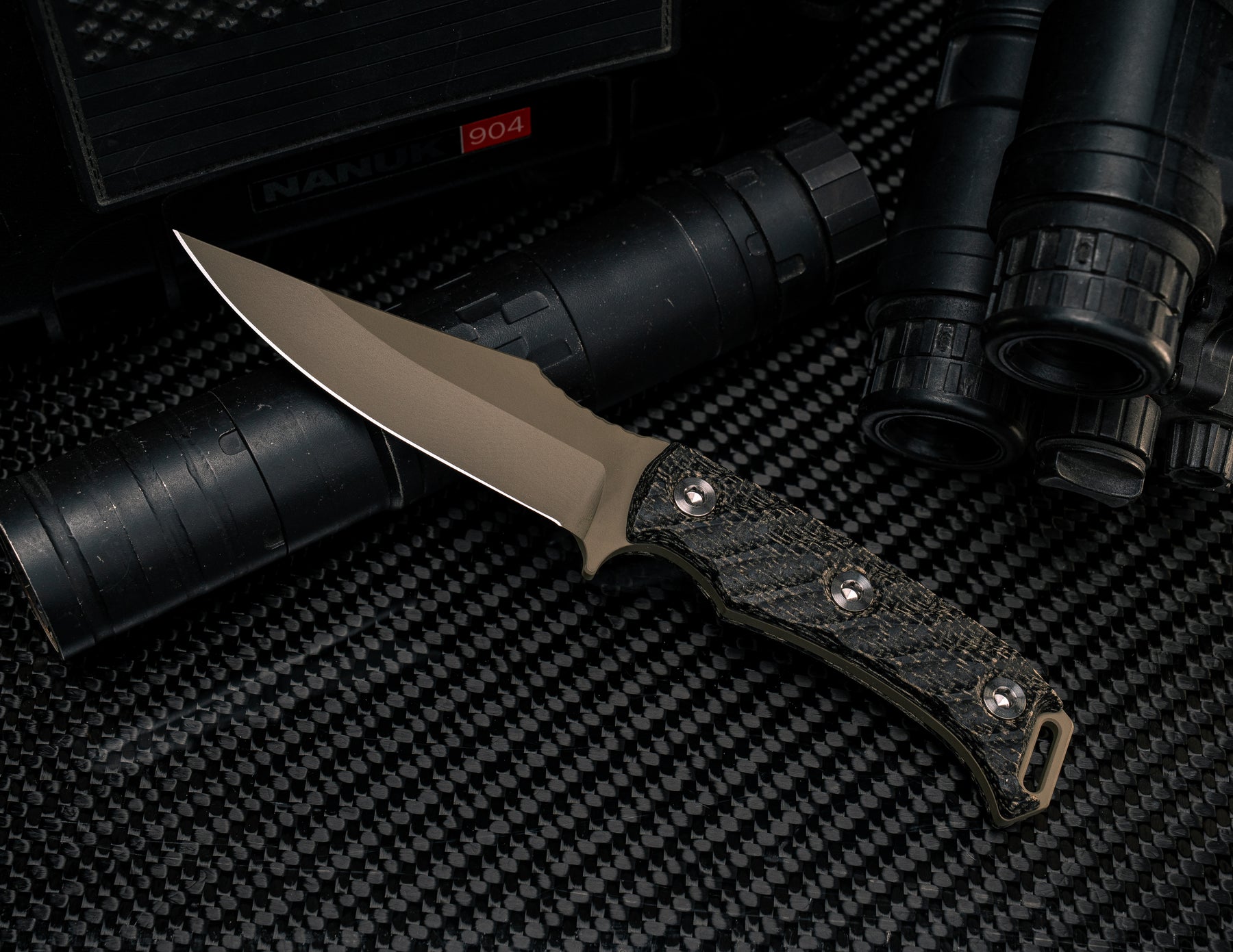 Tosahwi - Black Burlap Micarta, FDE Cerakote, Ti Allen Bolts, Iron Gri
