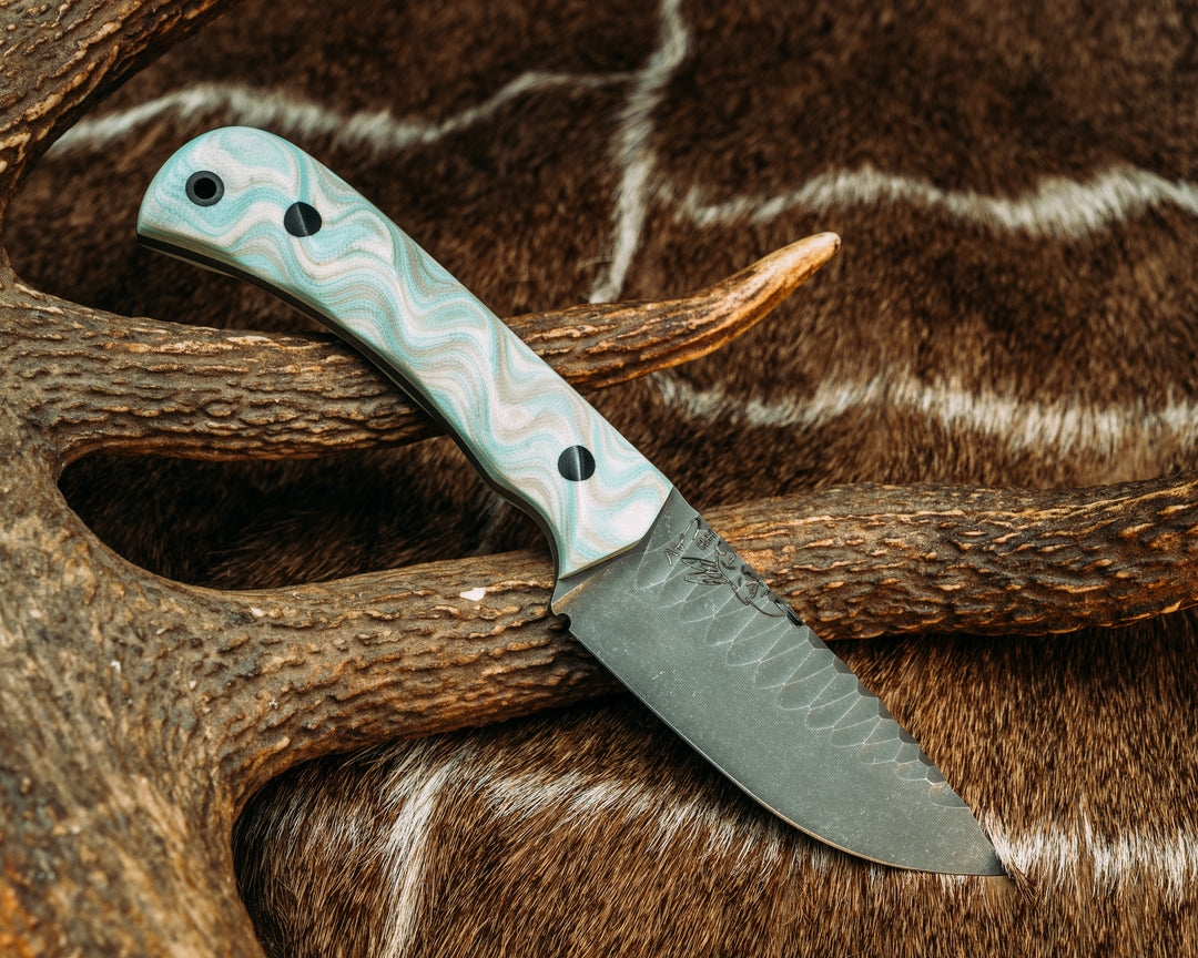 Cav Jr- Ivory, Tiffani Blue and and Tan Burl G10, CF Pins, CF Lanyard Pin, Textured Grip