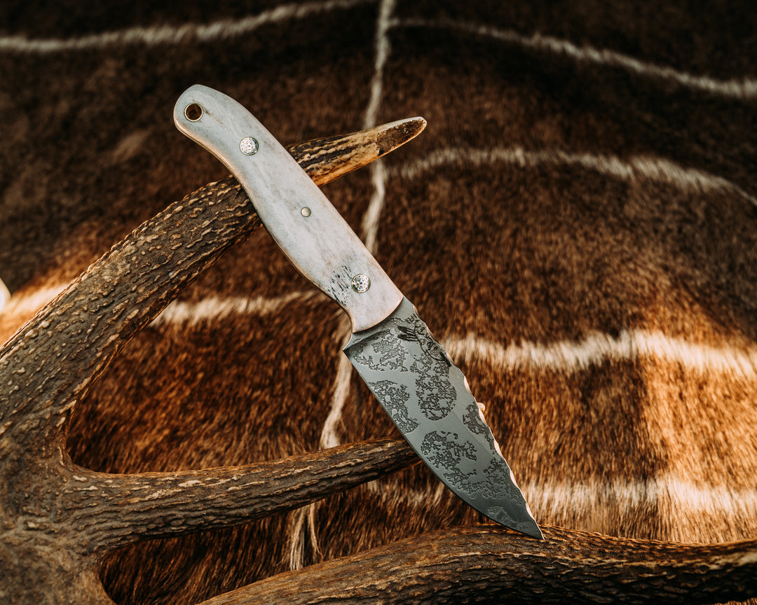 Field Knife Jr- Snakewood, Black G10, Natural Canvas Micarta and Bronze Split, Chechen Burl, Mosaic Pins, Contoured Grip