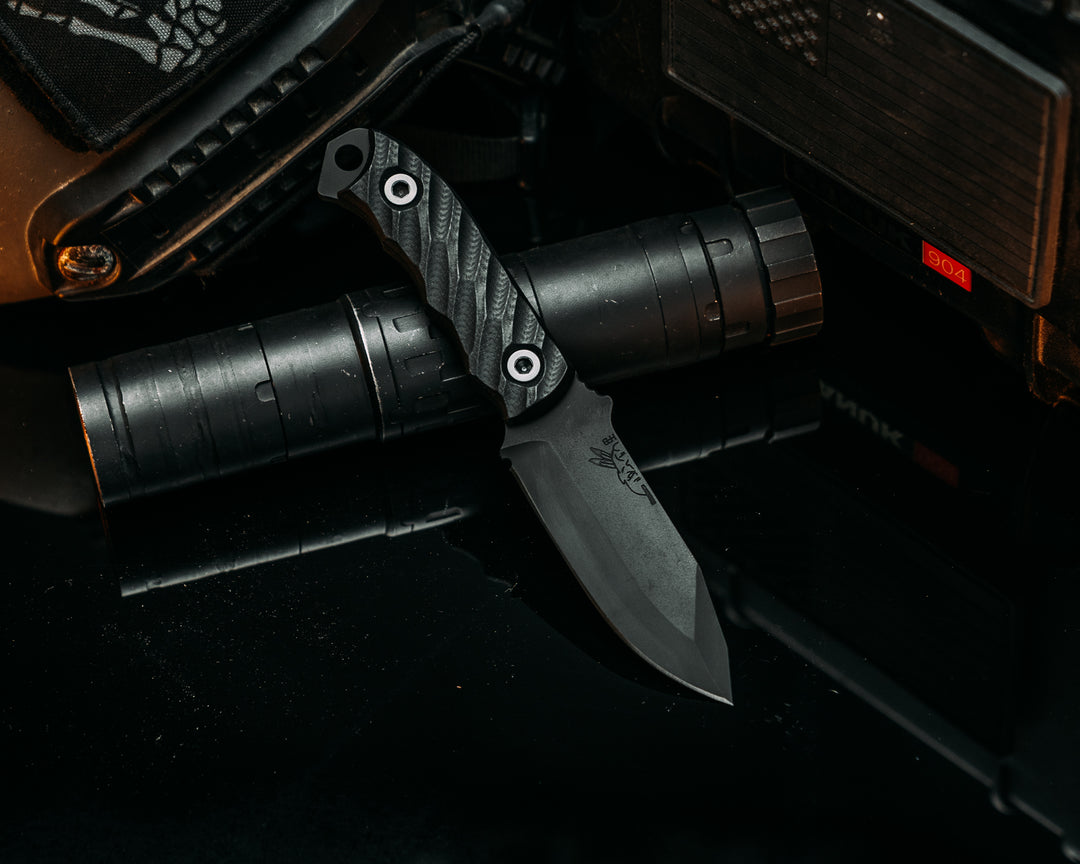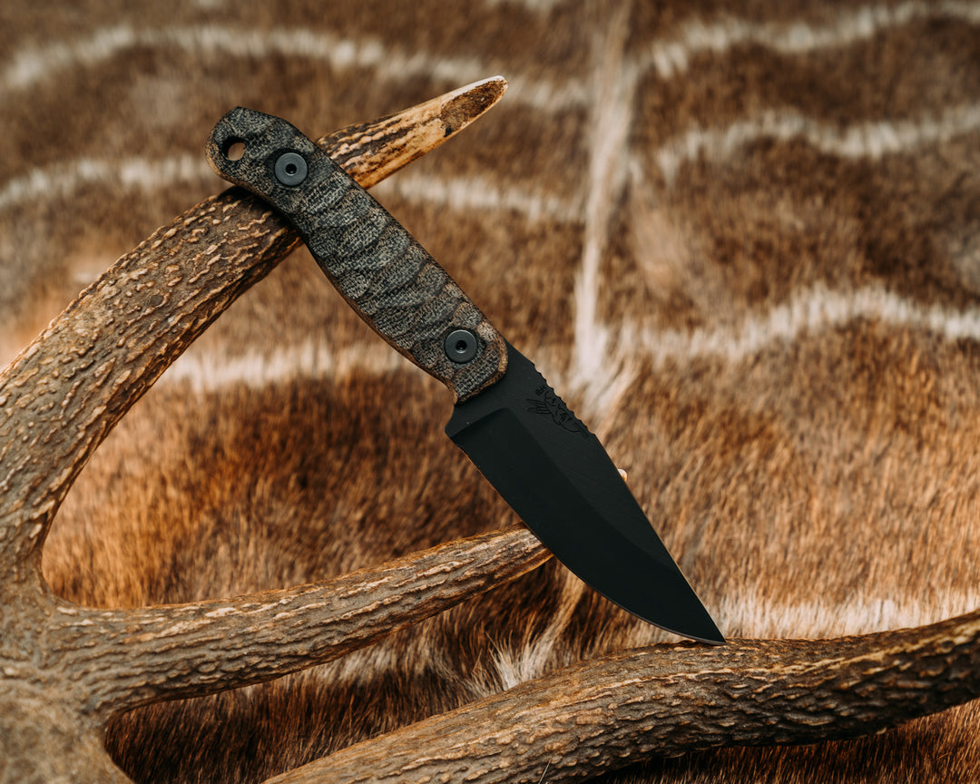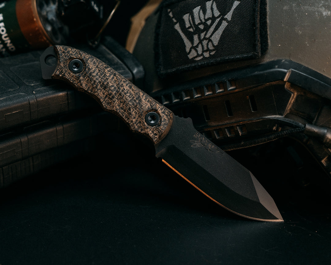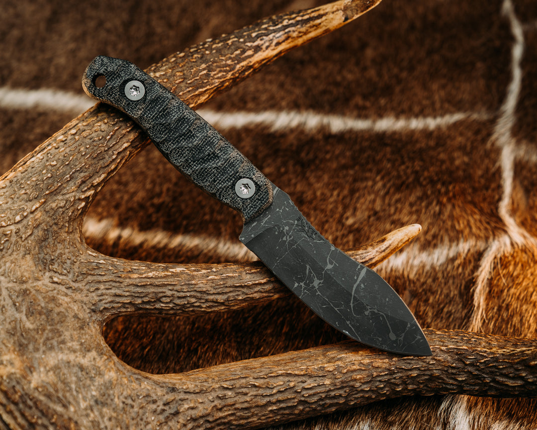 Skinner Jr- Black Burlap Micarta, Midnight Bronze Cerakote, Allen Bolts, Chaos Grip
