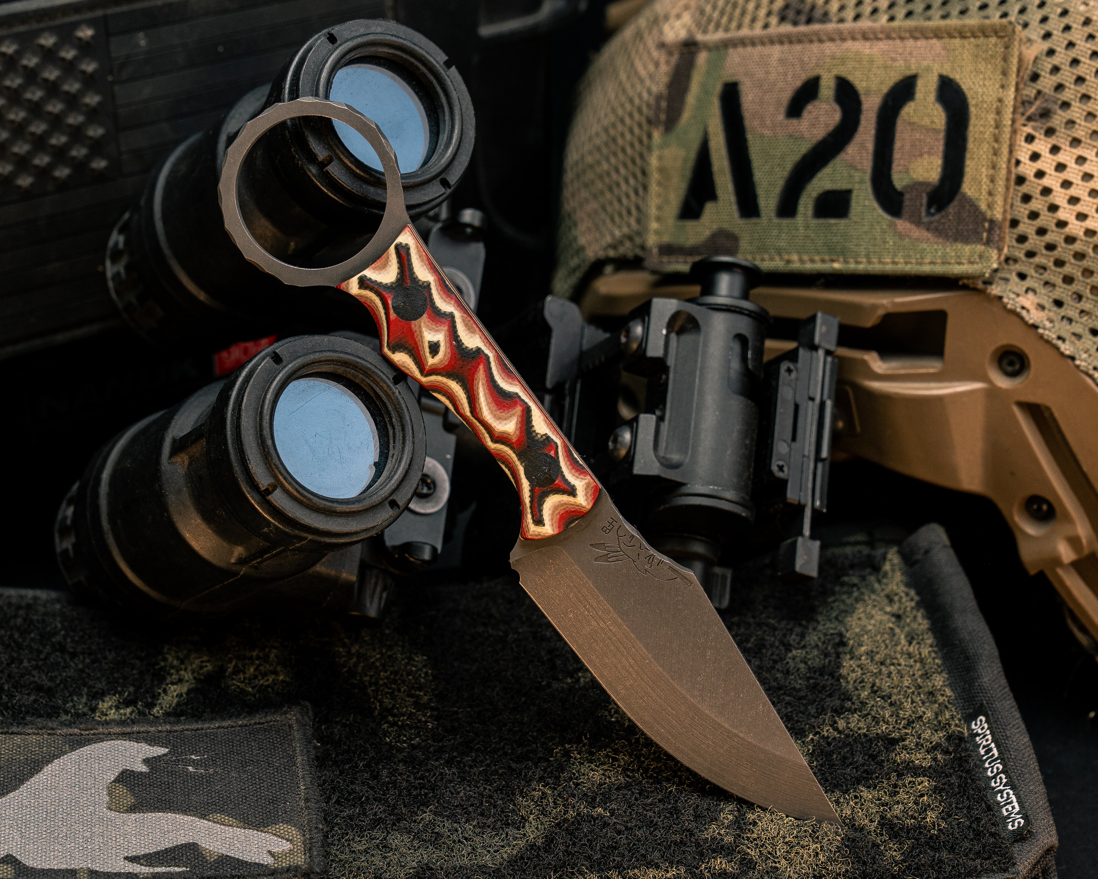 Next: Jaq- Red, White and Black Layered G10, CF Pins, Textured Grip