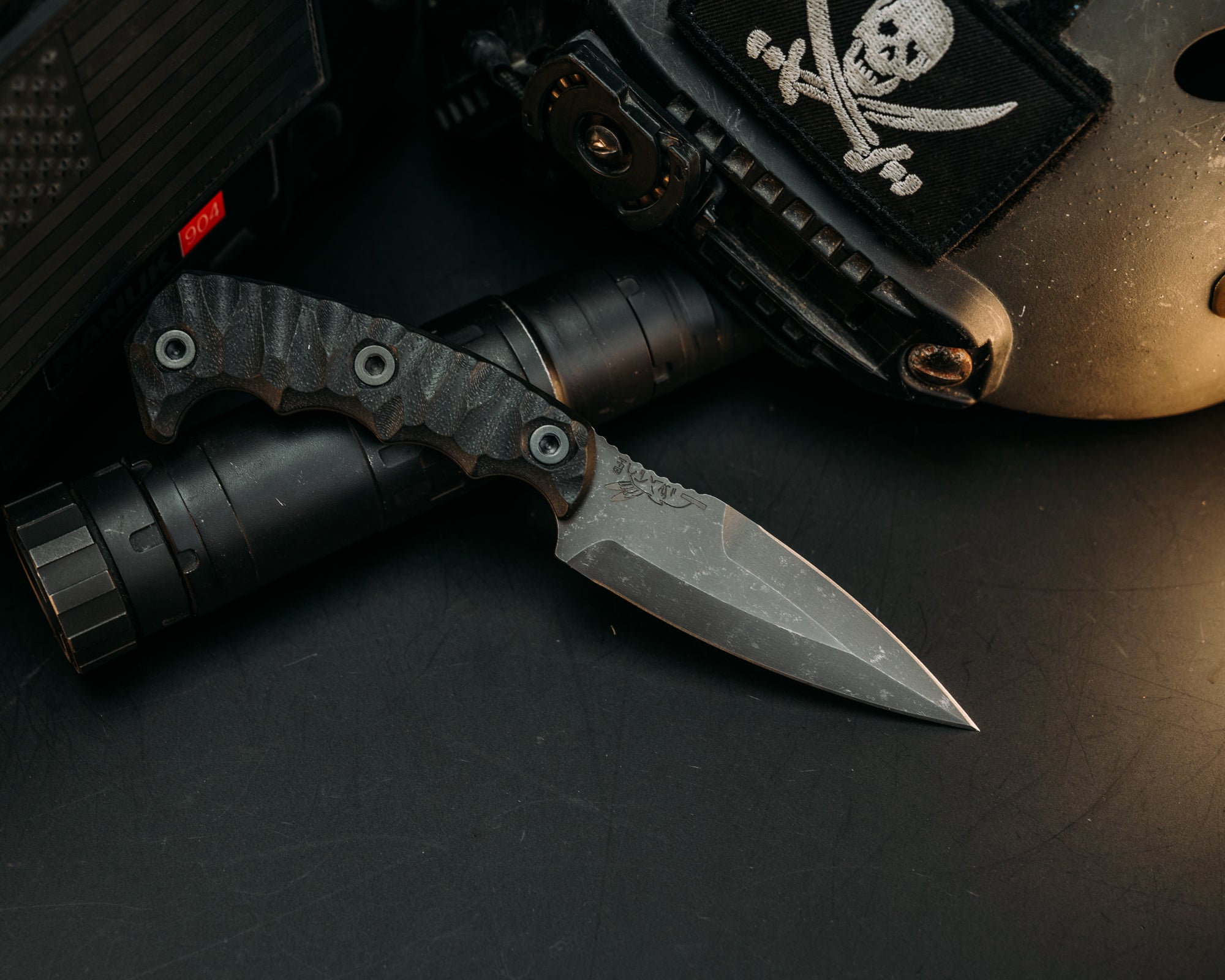 Combat Dagger - Black G10, Midnight Bronze Cerakote, Allen Bolts, Chaos Grip.
