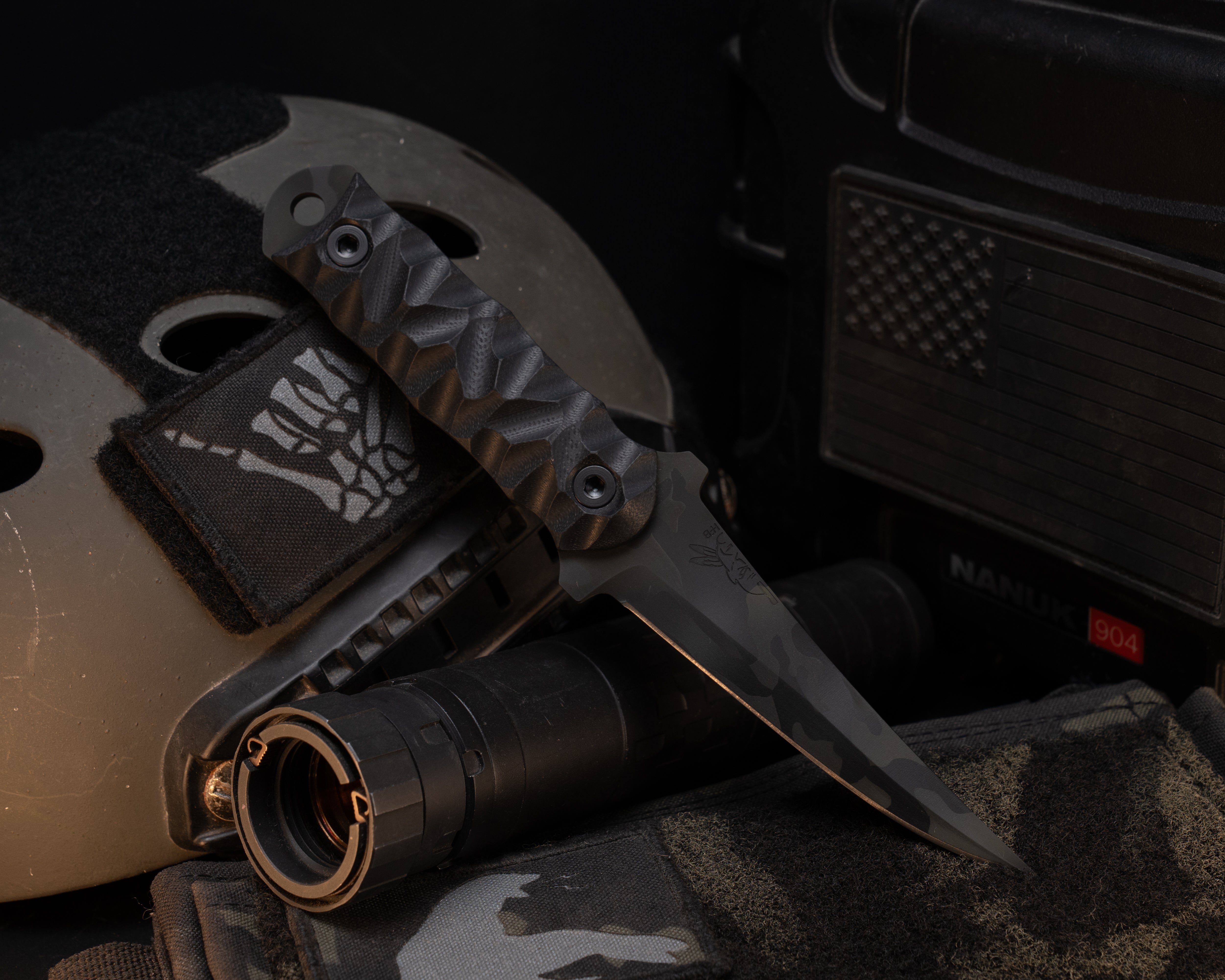 Combat Filet - Black G10, Tiger Stripe Cerakote, Allen Bolts, Textured Grip