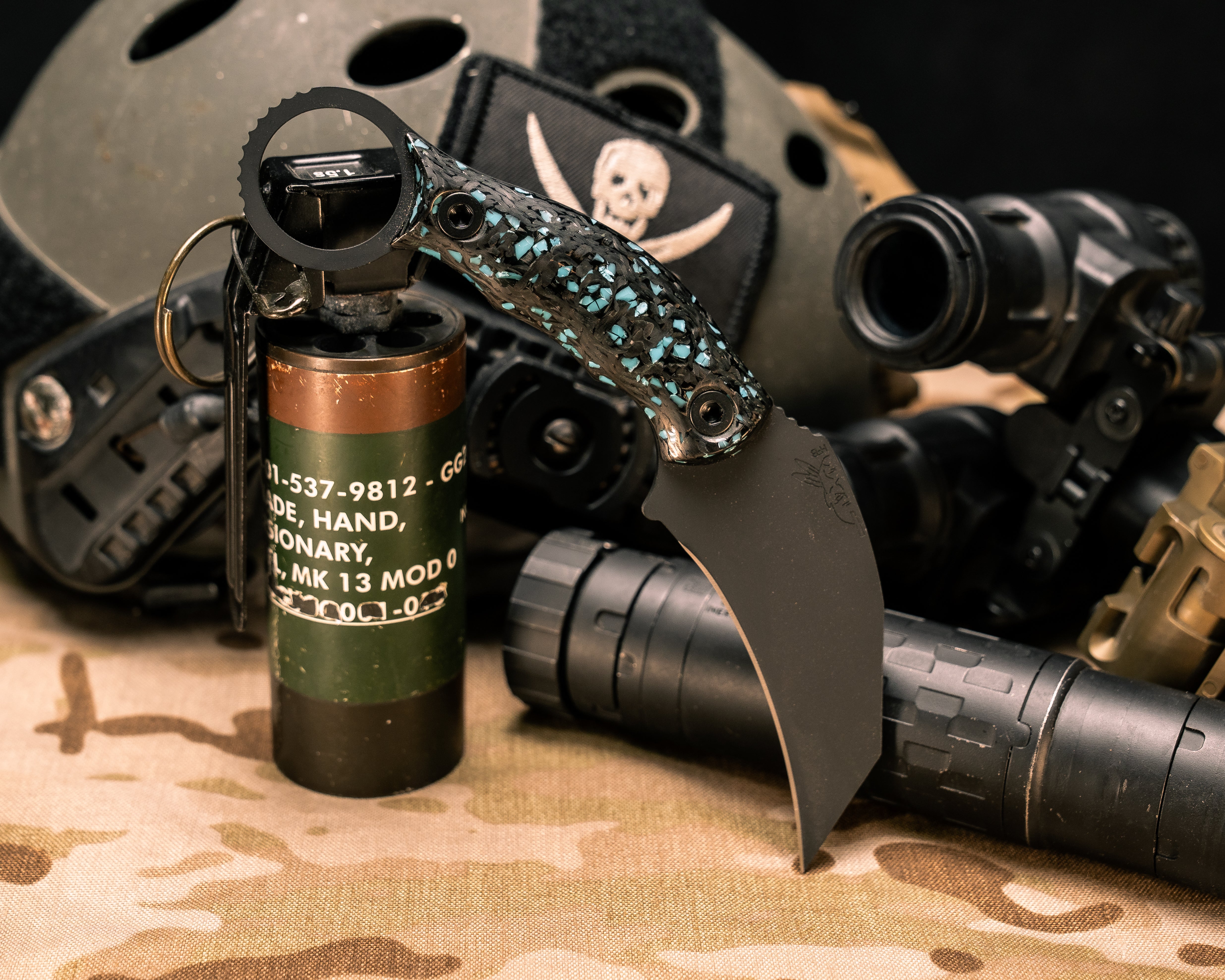 Next: Karambito- Turquoise Rocky Wave Carbon, Armor Black Cerakote, Allen Bolts, Smooth Grip