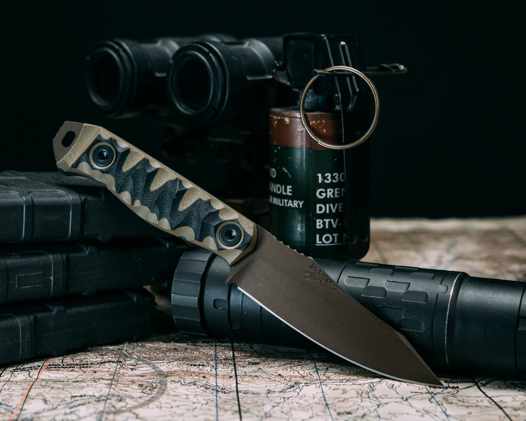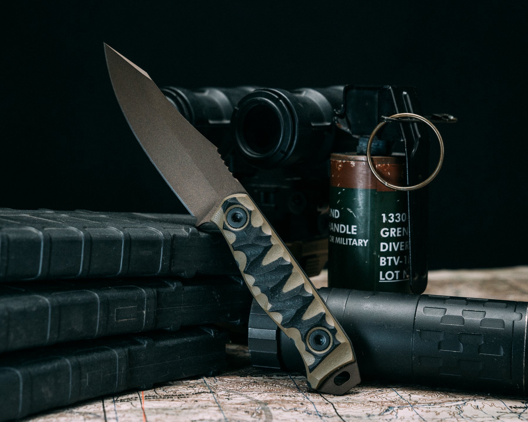 Field Knife Jr- OD Green and Black G10, Midnight Bronze Cerakote, Allen Bolts, Chaos Grip