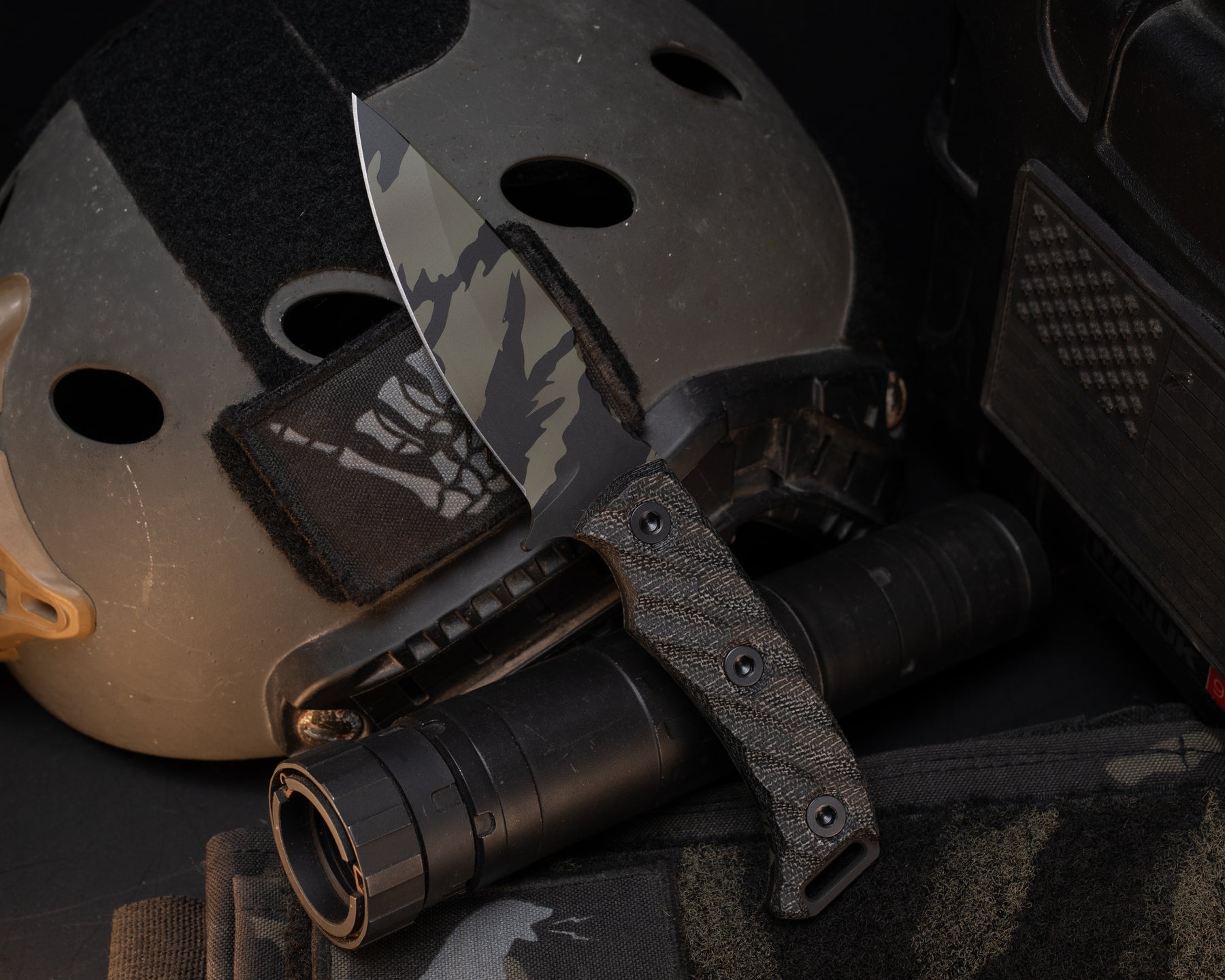 Ishi - Black Canvas Micarta, Tiger Stripe Camo Cerakote, Allen Bolts,