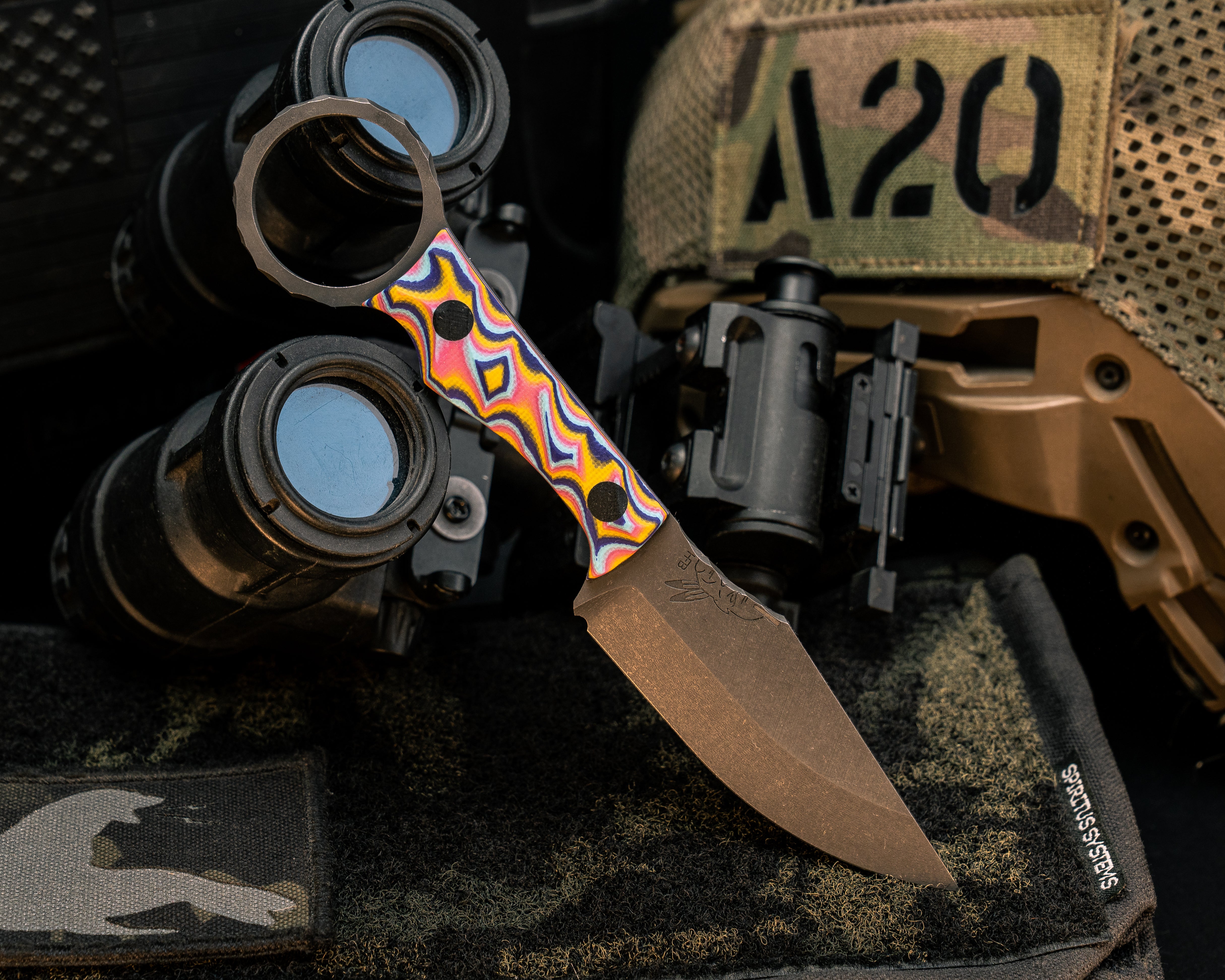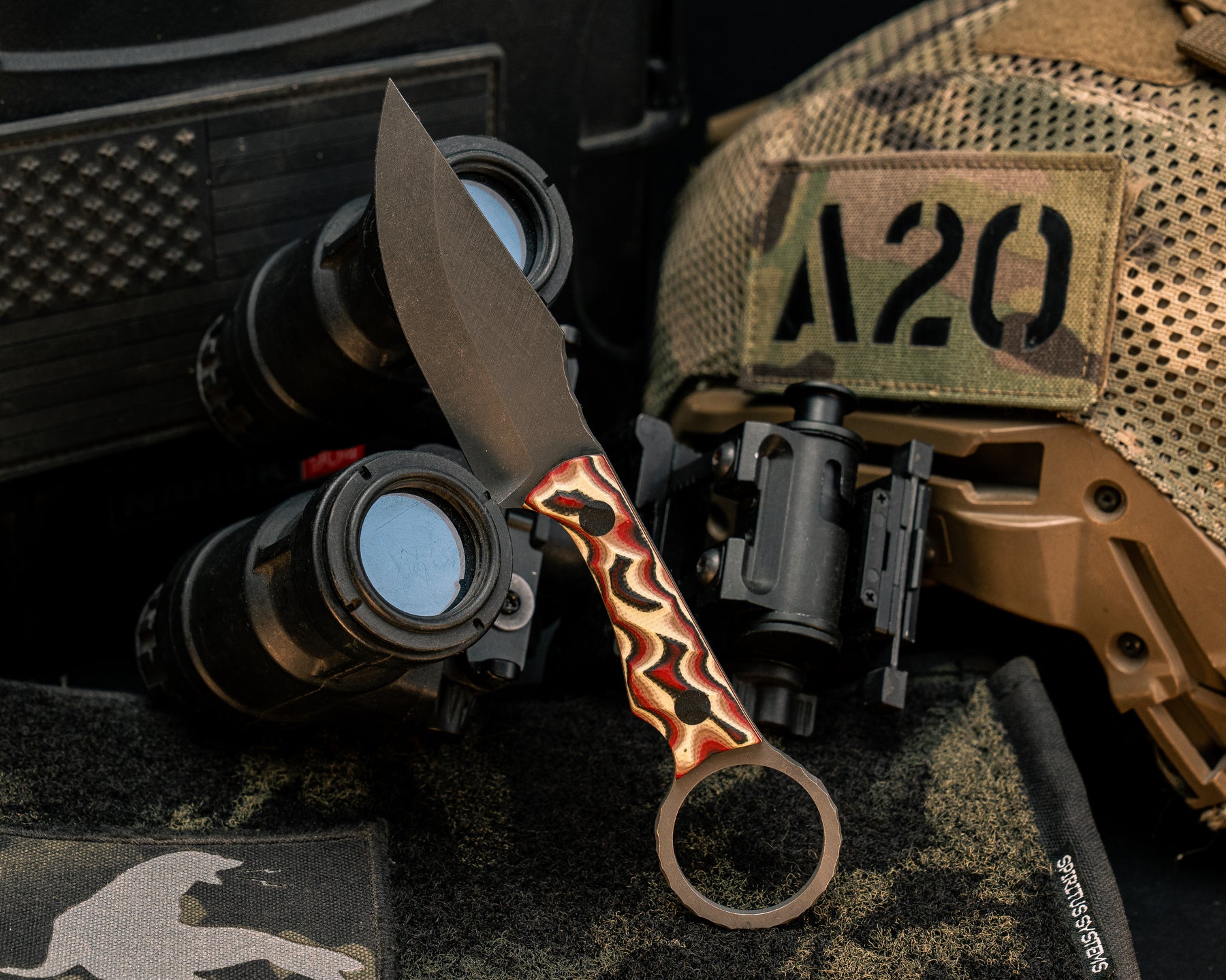 Jaq- Red, White and Black Layered G10, CF Pins, Textured Grip