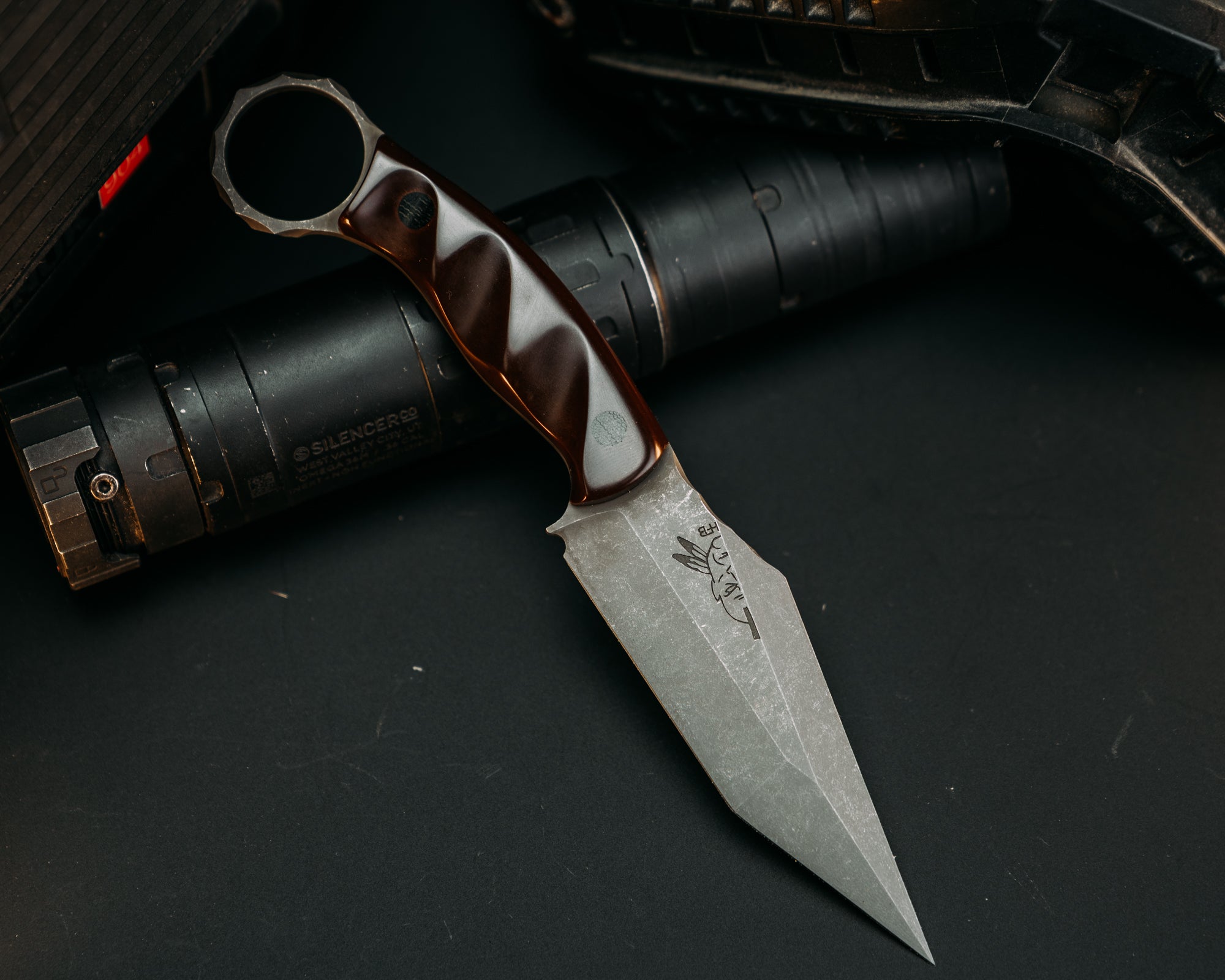 Next: Ringed Tac Tanto- Redstone Brown Richlite, Black Micarta Pins, Grooved Grip
