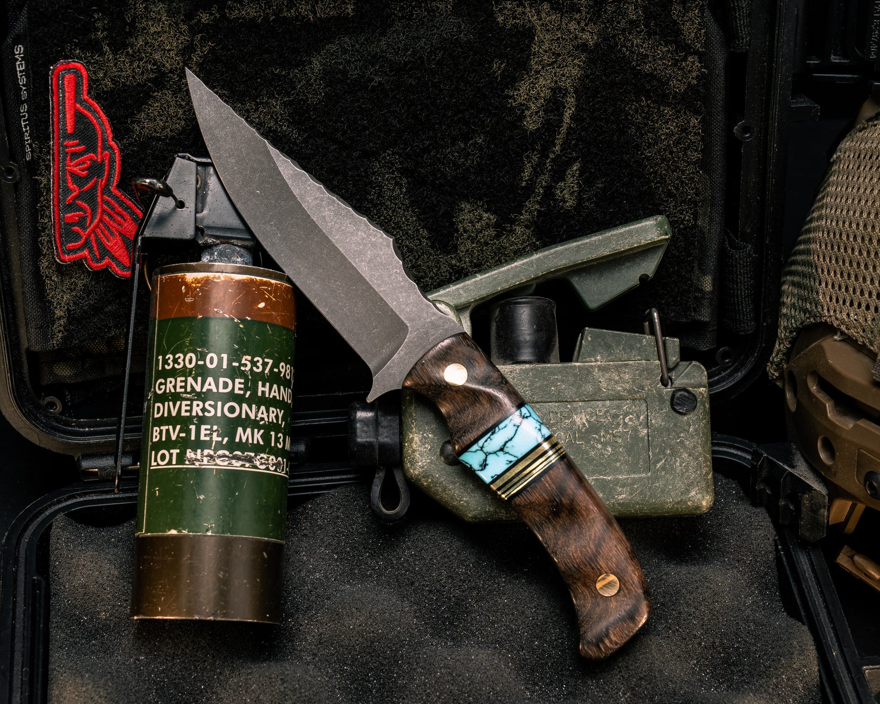 Tosahwi- Wenge, Black G10 Pin Striping, Turquoise with Black Matrix Tru-stone and Brass Split, Brass Pins, Textured Grip