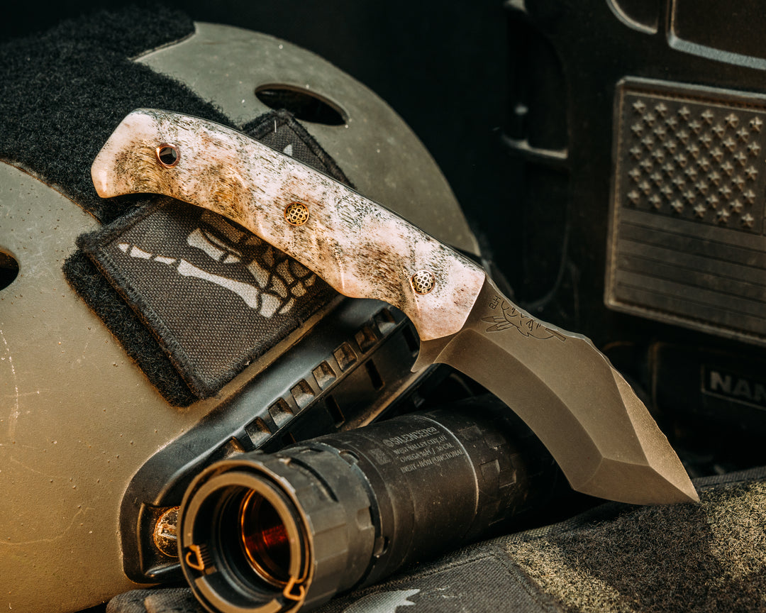 Buteo- CO Elk Antler, Mosaic Pins, Copper Lanyard Pin, Textured Grip