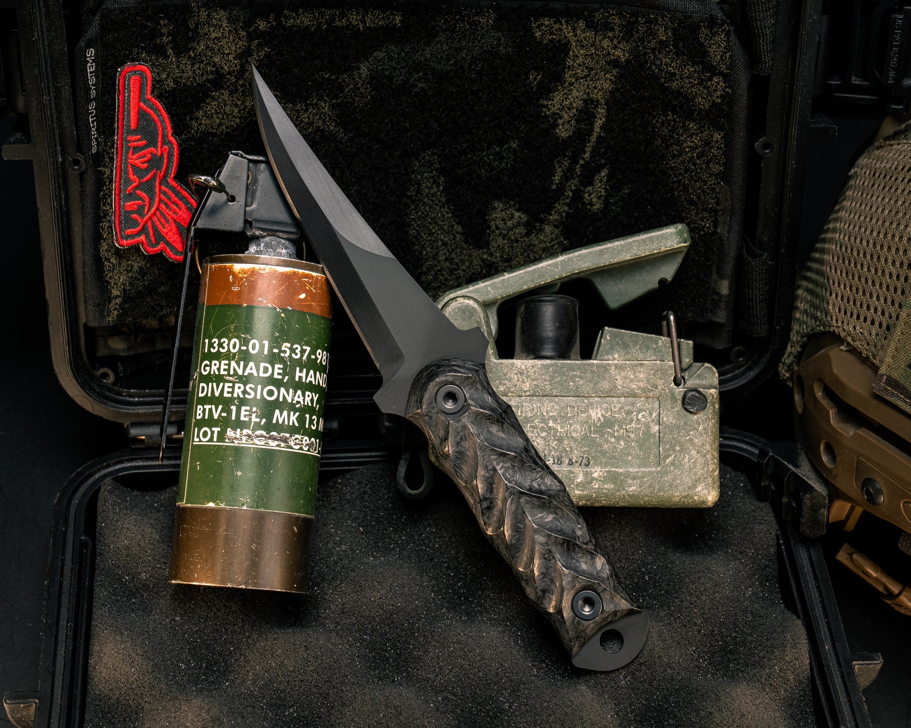 Combat Filet - Black Dark Matter Carbon Fiber, Armor Black Cerakote, Allen Bolts, Textured Grip