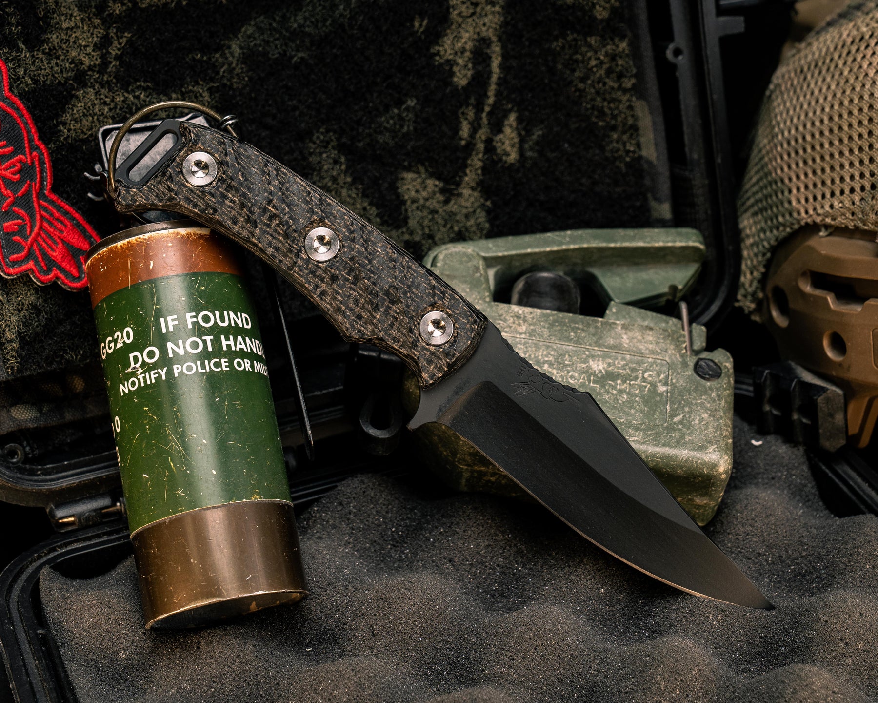 Tosahwi- Black Burlap Micarta, Armor Black Cerakote, Ti Allen Bolts, T