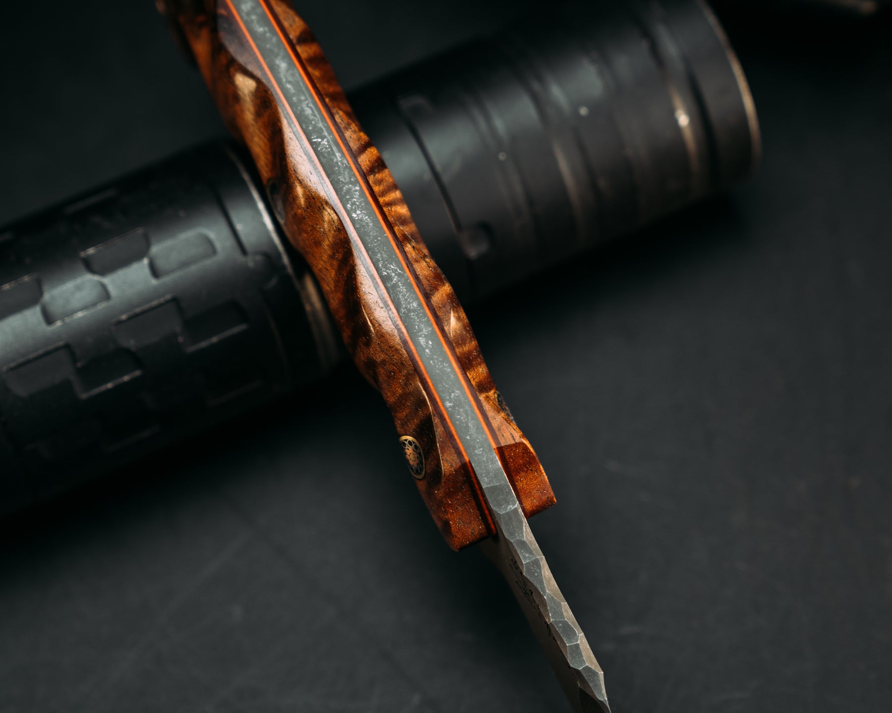 3" HUMINT- Hawaiian Curly Koa, Mosaic Pins, Brass Lanyard Pin, Textured Grip