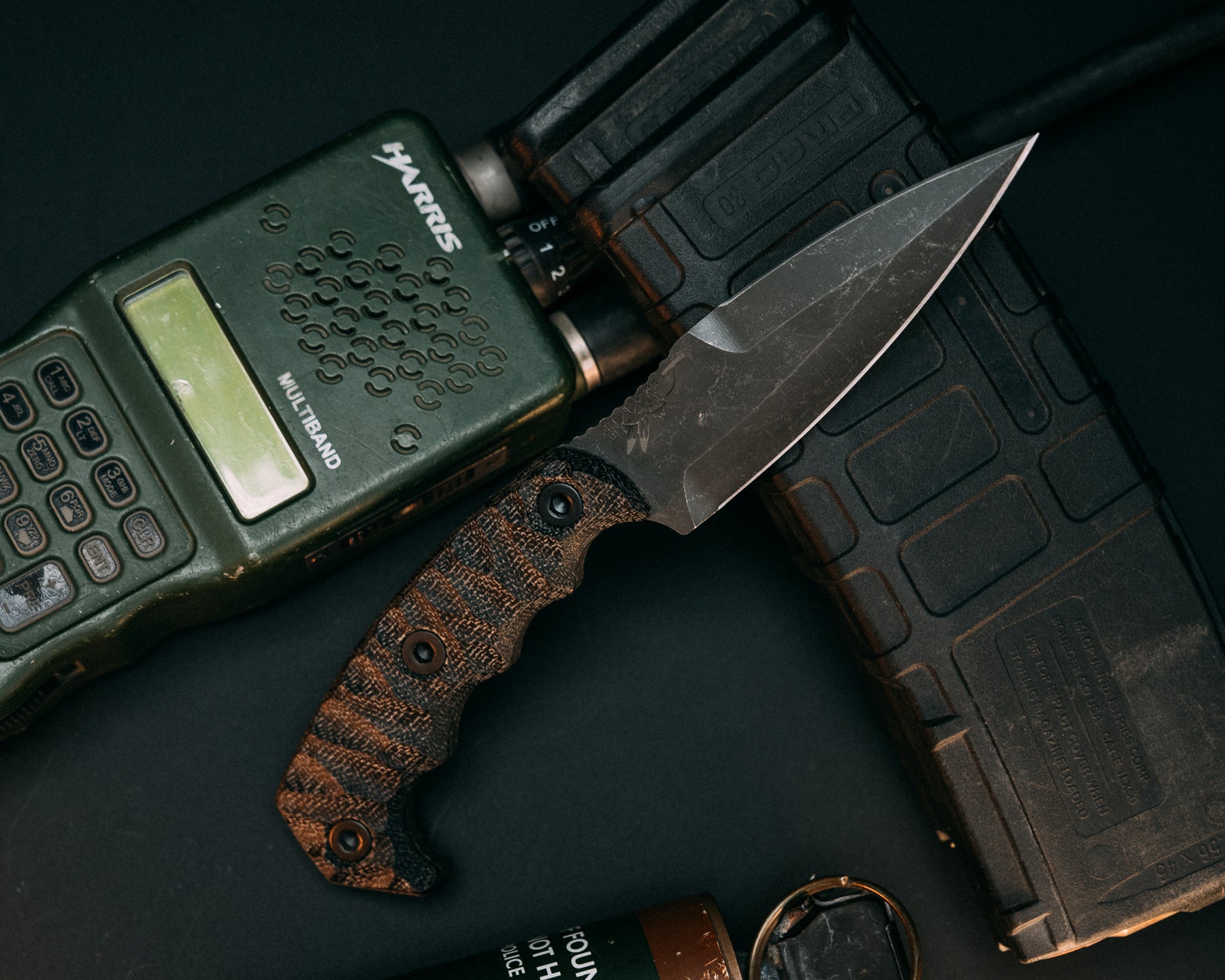 4" HUMINT- Black Canvas Micarta, Allen Bolts, Chaos Grip