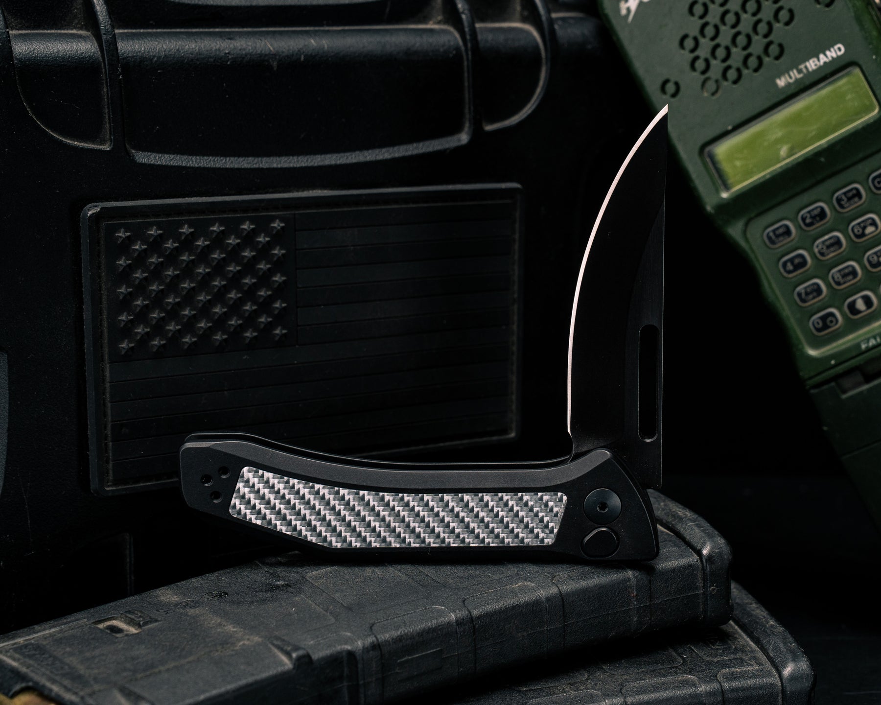 Custom Kwaiken Folder- Silver Weaved Carbon Fiber, Anodized Black Handle, Black Nitride Blade, Smooth Grip, Deep Carry Pocket Clip
