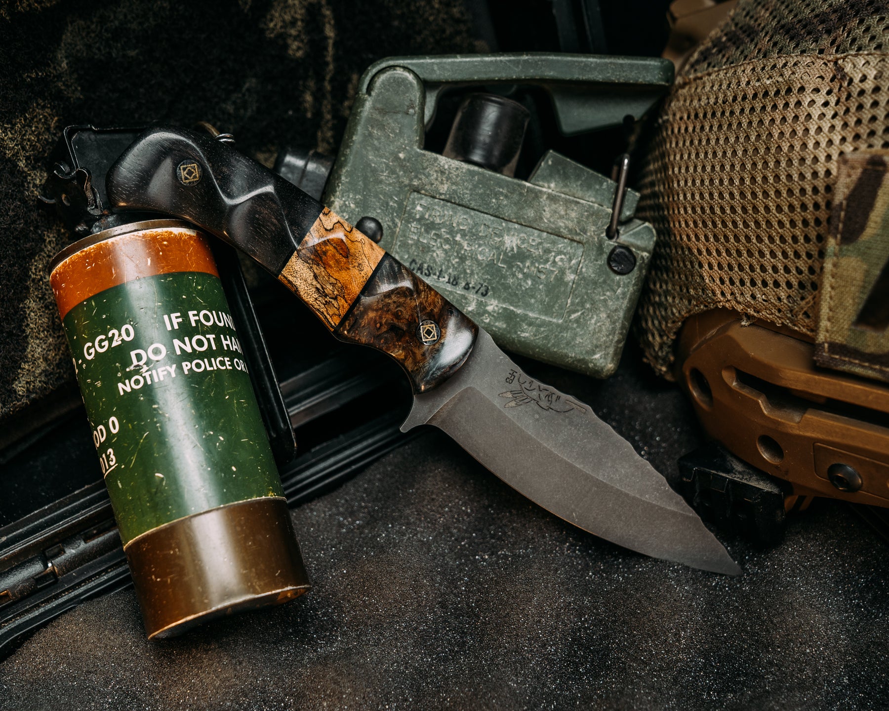 Ishi- Dyed Maple, Black G10 and Spalted Maple Split, African Blackwood