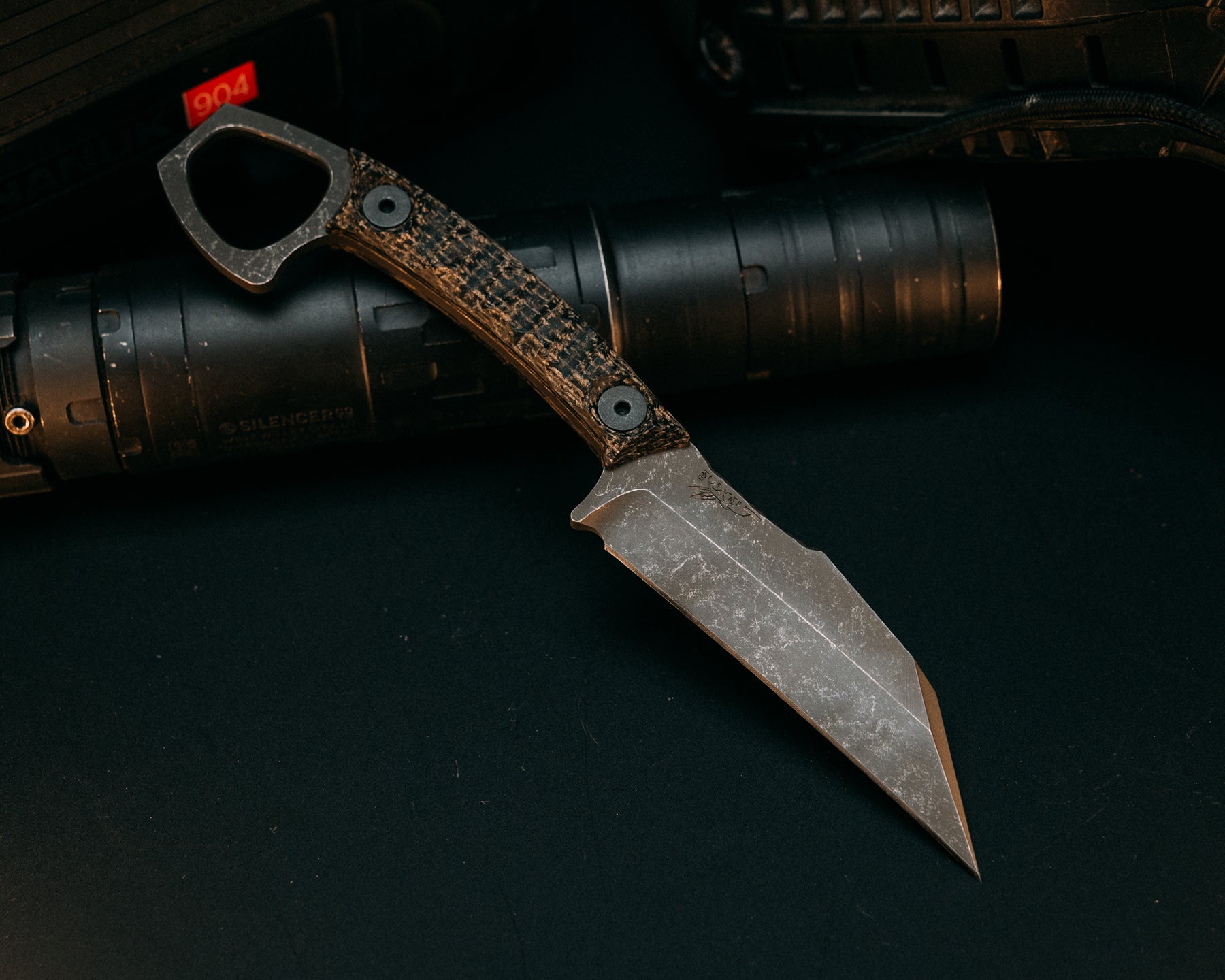 Blade designed by Special Operators for easy carry and easy access in plate carrier or in low vis situations, for pushing or stab and slash movements.